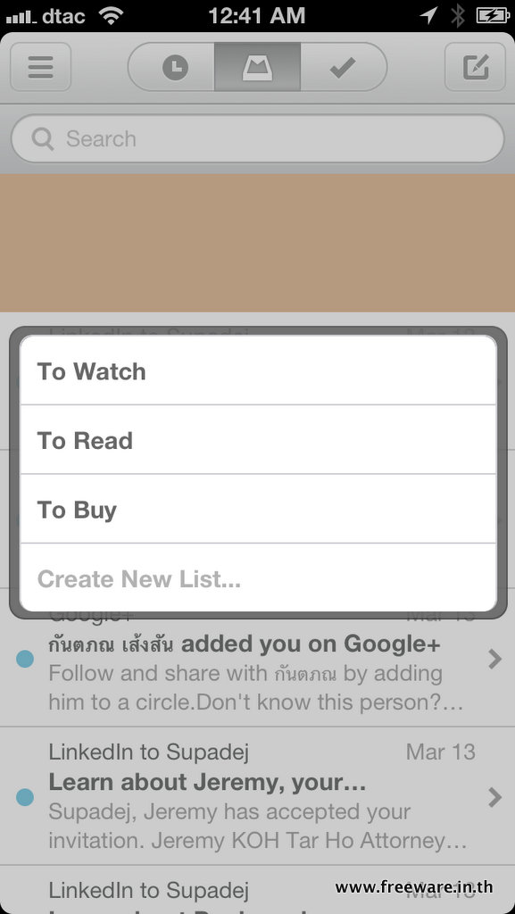 ปาดไปทางซ้ายจนสุดเป็นการคัดแยกเข้าสู่ List ต่างๆ