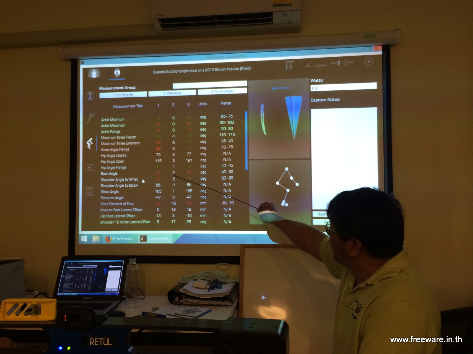 หลังจากตรวจร่างกายเพิ่ม ก็จะมีการนำเอาข้อมูลเหล่านั้นไปกรอกเพิ่มเติมในโปรแกรมของ Retul เข้าไปอีกขั้นตอนการตรวจ การกรอกนี่ก็เกือบๆ ชม. เห็นจะได้ครับ