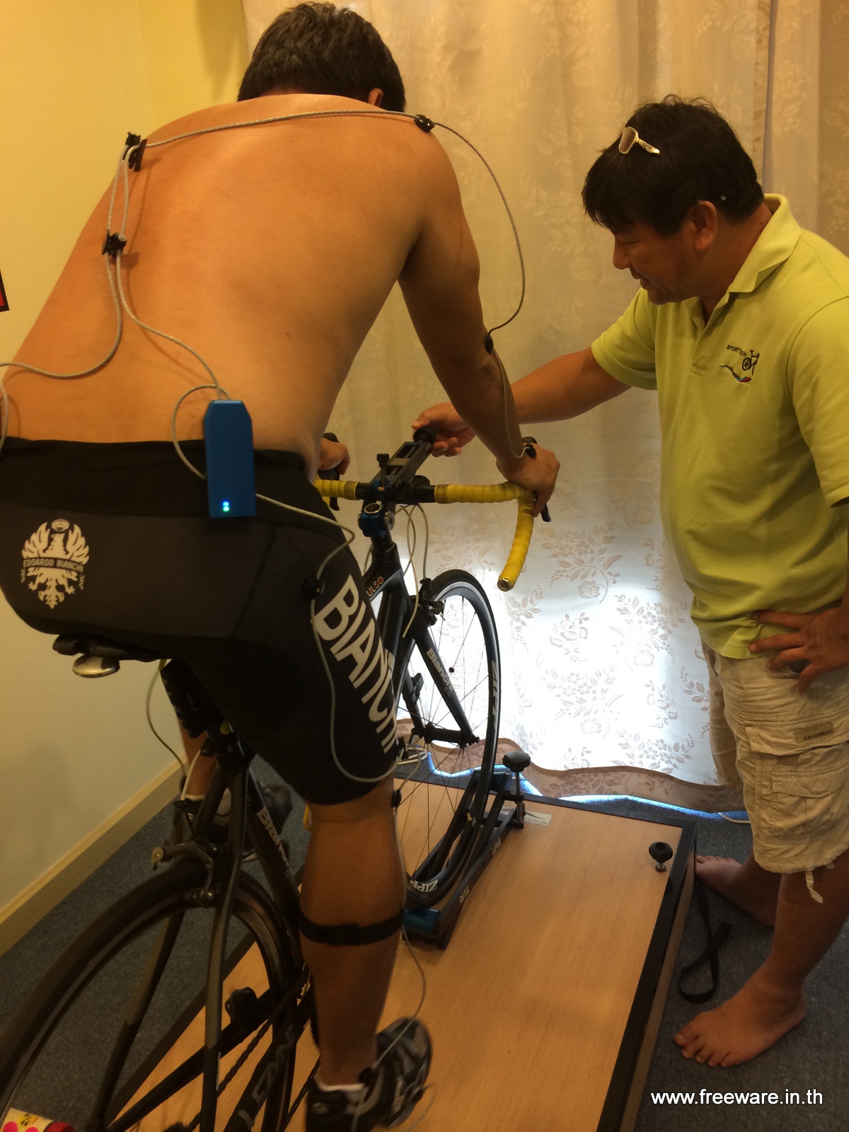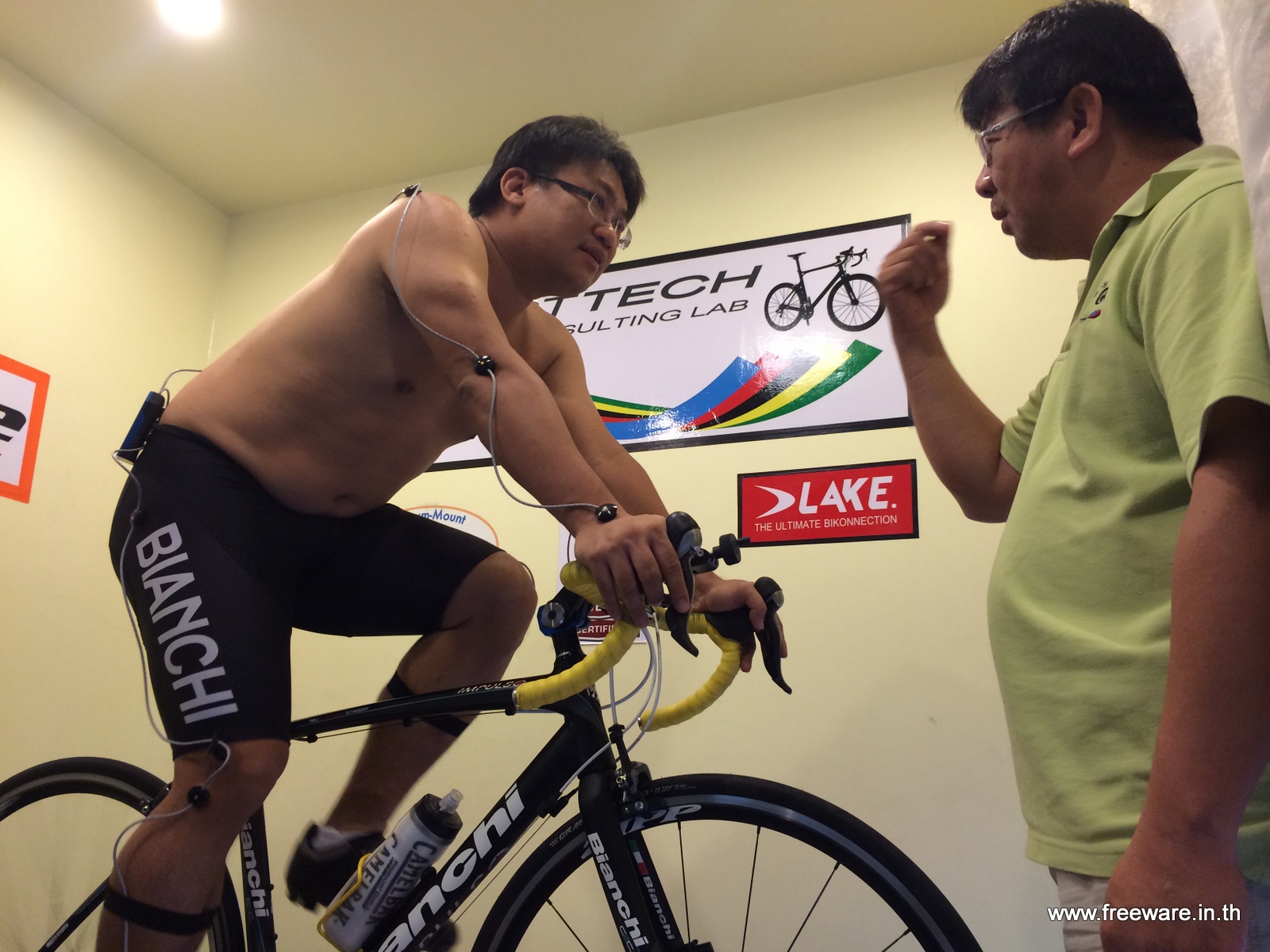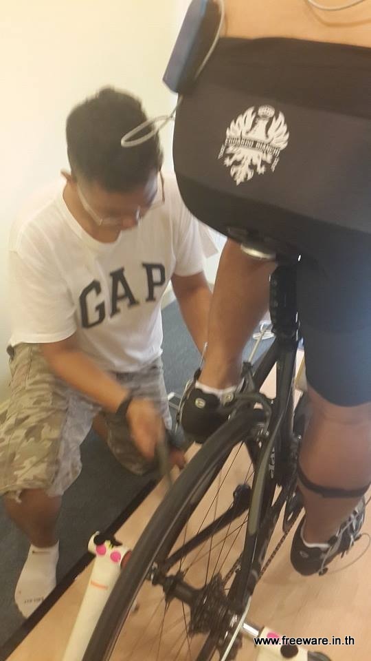 ระหว่างนั้น ผมก็ต้องขั้นไปปั่นๆๆๆ พี่อิ๊ด ก็จะเห็นตัวเลขทั้งหมดว่า ท่าทางการปั่นของผมเป็นยังไง ตอนแรกที่เห็นคือ ตัวแดงเถือกเยอะมากเลยครับ เพราะร่างกายผมปั่นด้วยท่าทางที่ผิดมานานมากๆ