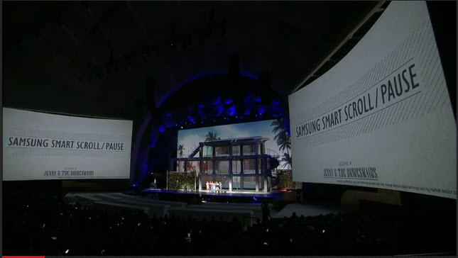 Samsung Smart Scroll / Pause ก็คือ เมื่อคุณเล่นไฟล์วีดีโออยู่ แต่ตาเราไม่ได้มองที่จอ มันก็จะ Pause ตัวไฟล์วีดีโอให้ครับ ทีนี้พอเราหันกลับมาดูอีกครั้ง วีดีโอก็จะเล่นต่อให้ครับ