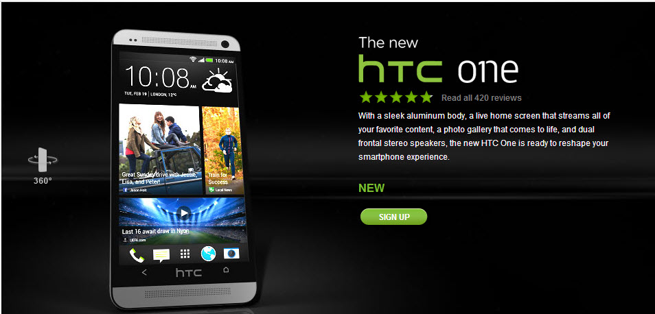 HTC One ถือเป็นเรือธงจาก HTC ที่มีความเปลี่ยนแปลงเยอะมากจากในอดีต เพราะเปลี่ยน Home Screen ใหม่เป็นระบบ Blink Feed ที่ทำให้คุณดูข้อมูลต่างๆได้ง่ายขึ้น กล้องหลังที่เป็นกล้องแบบ Ultra Pixel ที่ถึงแม้ภาพที่ถ่ายได้จะมีความละเอียดแค่ 5Mbps แต่ความละเอียดของภาพที่ซูมเข้าไปมันชัดกว่าเดิมถึง 3 เท่า