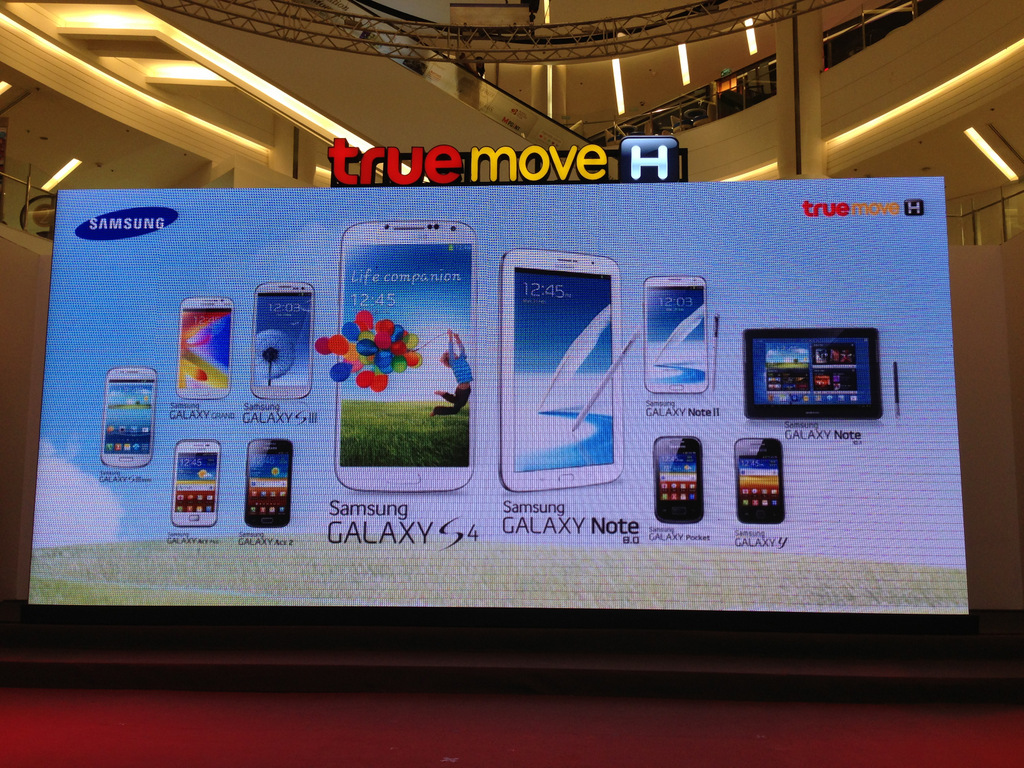 พอมาถึงงาน จอขึ้นภาพโทรศัพท์มือถือ Samsung สารพัดรุ่นเลย ก็เอ๊ะ ยังไงหว่า หรือว่ามีโปรโมชั่นร่วมกัน??