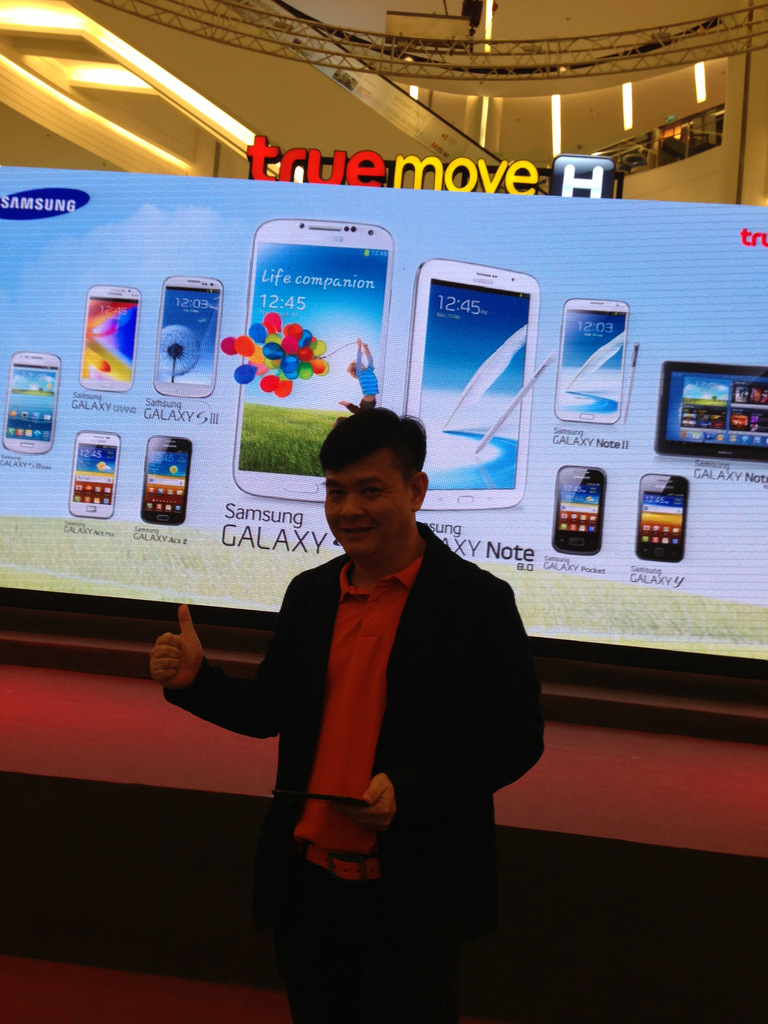 เจอพี่วิชัย พรพระตั้ง ผู้บริหารของ Samsung ด้วย เลยลองถามพี่แกว่า ทำไม Samsung ถึงเลือกจับมือกับ TrueMove H ครับ พี่วิชัยแกตอบว่า เราเปิดกว้างสำหรับทุกค่ายครับ จะเห็นว่ามี โปรโมชั่น Samsung รุ่นอื่นๆกับค่ายอื่นอยู่แล้ว แต่ TrueMove H เป็นเจ้าแรกที่เลือกทำโปรโมชั่นชุดใหญ่ขนาดนี้กับ Samsung