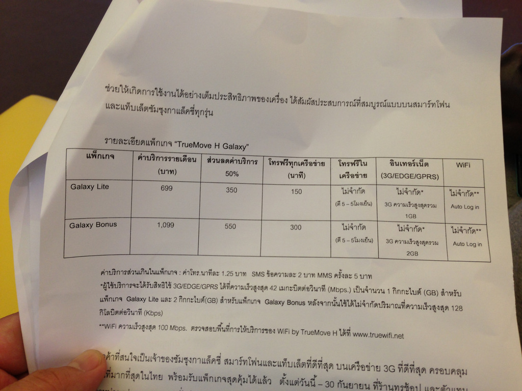 ใครมีเครื่อง Samsung Galaxy อยู่ในมือที่ซื้อจากศูนย์อยู่แล้ว โปรนี้ถือเป็นโปรที่ดีมากเลยครับ สำหรับคนชอบโทรก็มีโปรโทรฟรีในเครือข่ายให้ ถึงเวลาจะเป็นเวลางานไปหน่อยก็เหอะ ส่วน Internet เนี่ย FUP 1GB + WIFI Unlimited นี่ก็คุ้มแล้วครับ ความเร็วหลังจาก FUP หมด เป็น 128k ก็ยังถือว่าพอรับได้นะ โดยรวมแล้วคุ้มครับ เสียแค่ต้องเปิดเบอร์ใหม่อย่างเดียวนี่แหละ สนใจไปดูกันได้ที่ http://www.truemove-h.com/samsung ครับ