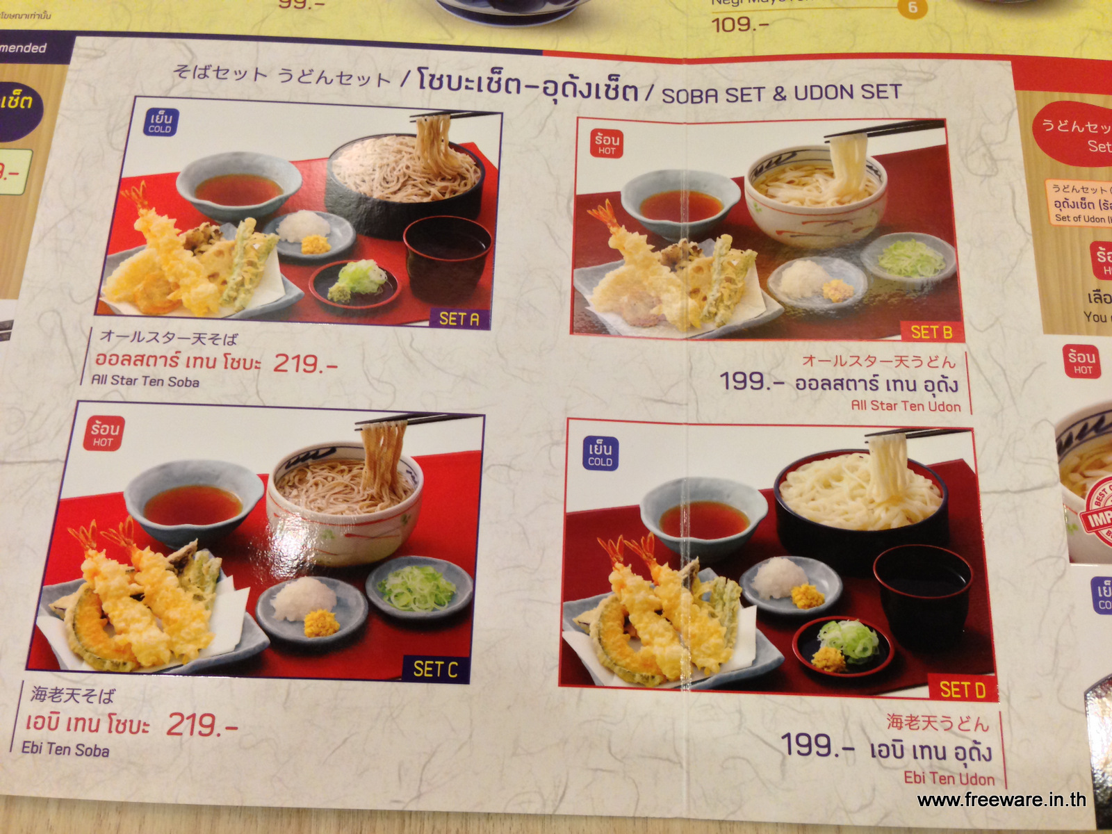 หมวดที่สองก็คือ โซบะ / อุด้ง ทานแบบ ร้อน/เย็น กับเทมปุระเซ็ตครับ สำหรับเส้นโซบะและน้ำซอส ร้านเทนยะจะใช้วิธีนำเข้าจากประเทศญี่ปุ่น เพื่อควบคุมคุณภาพวัตถุดิบให้ได้มาตรฐานเท่ากันทุกสาขาครับ