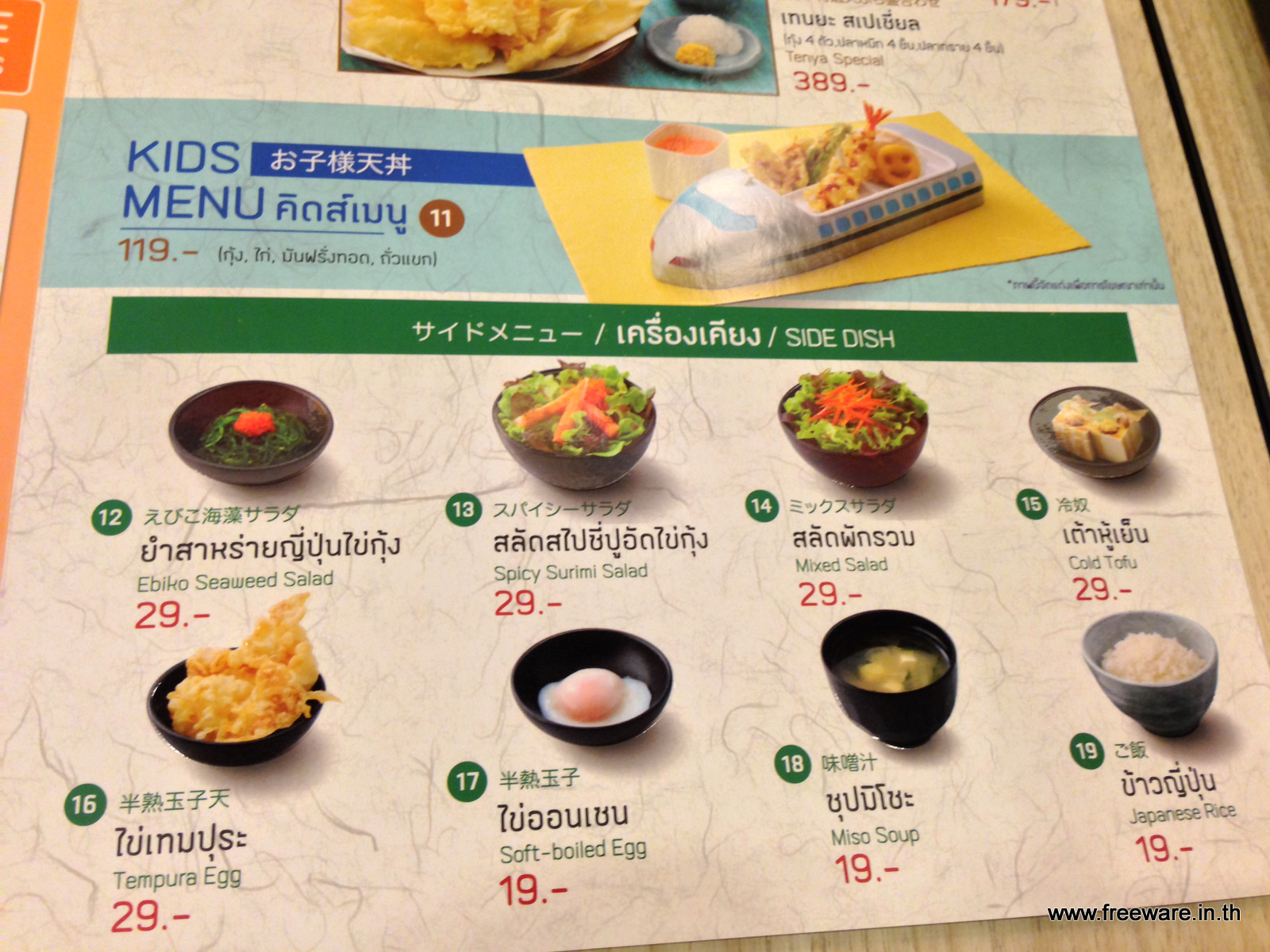 อย่างที่บอกไปครับ ร้านเทนยะ จะเน้นเทมปุระเป็นหลัก โดยที่ อาหารหลักๆจะมีอยู่ทั้งหมด 4 หมวดด้วยกัน