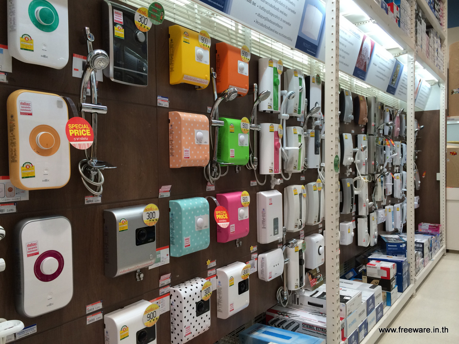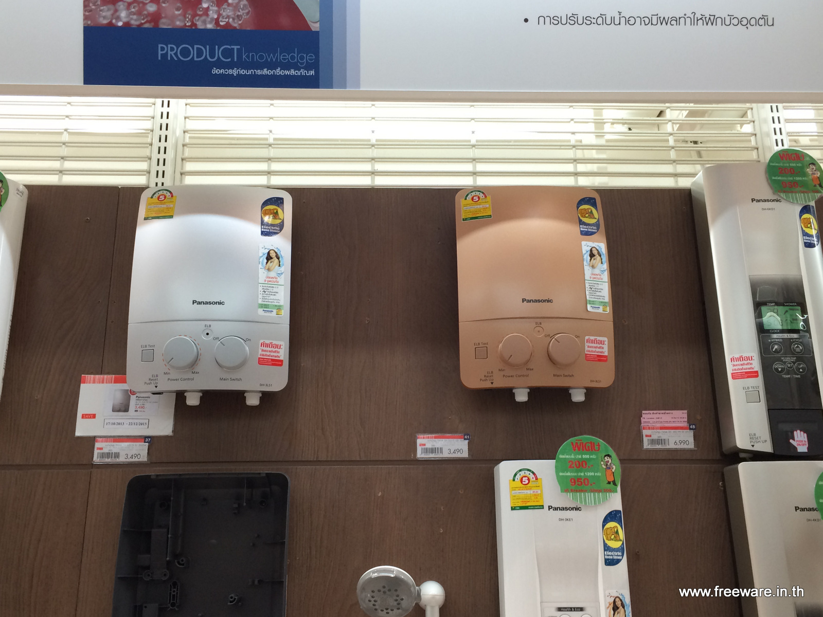เท่าที่ลอง Post สอบถามใน Facebook กับ Twitter มา ก็พบว่ายี่ห้อที่คนแนะนำก็คือ Panasonic ก็เลยไปด้อมๆมองๆที่ HomePro เพื่อหาซื้อซักรุ่นกลับมาเปลี่ยนครับ แต่ทว่าเมื่อเดินไปถึงบูทเครื่องทำน้ำอุ่น ปรากฏว่า
