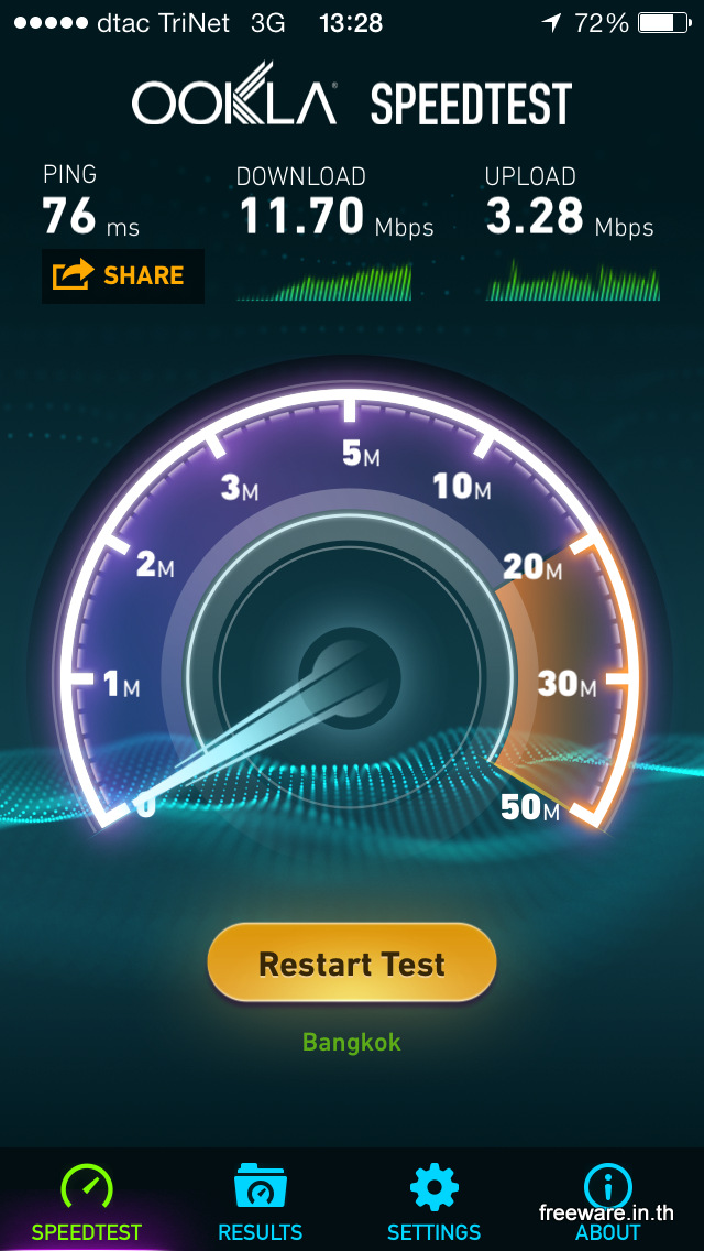 หลังจากการแก้ไข พบว่าอาการสายหลุด เริ่มลดน้อยลง ความเร็ว 3G ดีขึ้นมาก แล้วก็ มี Logo dtac TriNet โผล่มาให้เห็นบ่อยขึ้น ตรง Operator Logo ครับ