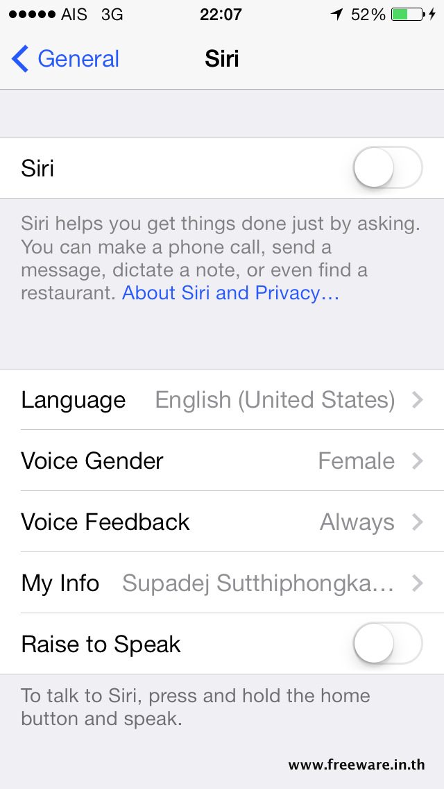 วิธีที่ 10 : ปิดแม่เลขา SIRI ที่เราไม่เคยคุยกะมันรู้เรื่องซะ