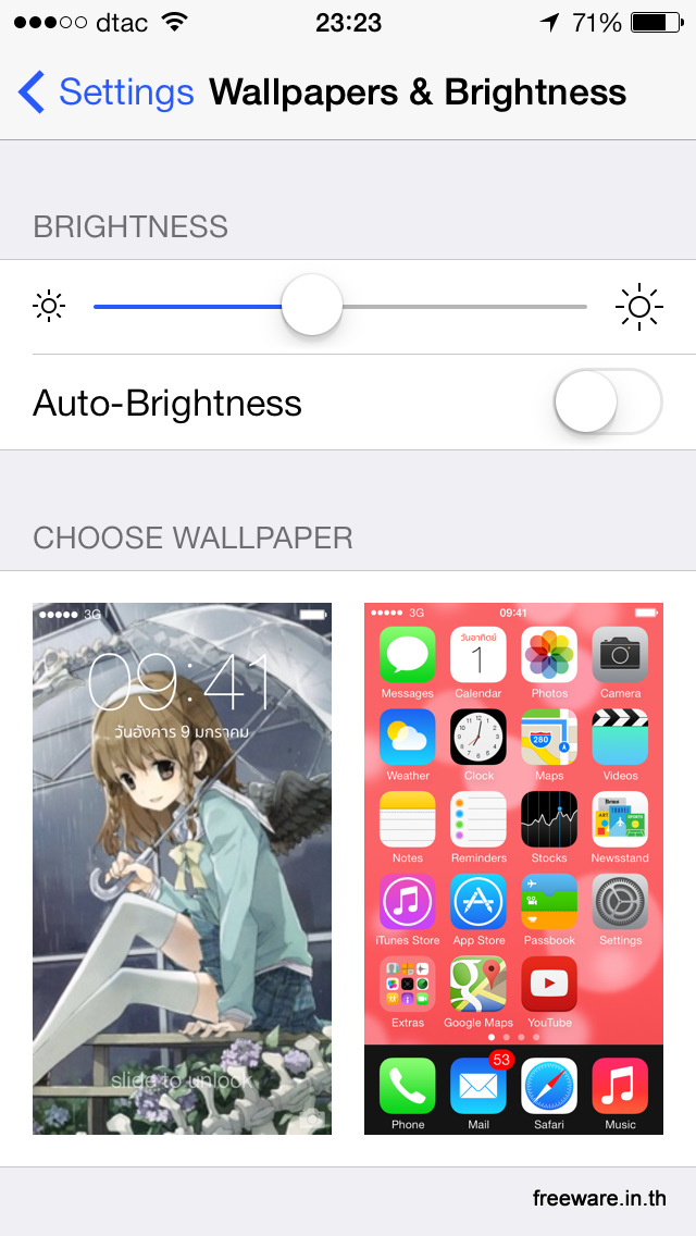 วิธ๊การปืด ไปที่ Setting -> Wallpaper and Brightness แล้วก็ปิดหัวข้อ Auto Brightness ซะ