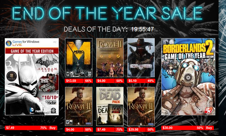 ค่ายนี้ก็มีเกมทุกรูปแบบ แต่จะเน้นไปทางพวกเกม Big Title มากกว่า เช่น Dishonor , Touchlight , ElderScroll อะไรพวกนี้ครับ แต่พวกที่เอามาทำ Promotion จะเป็นเกมเก่าหน่อย แต่ราคาที่ลด ก็ลดโหดสะใจกับแบบ 50-60% กันไปเลย แต่ส่วนใหญ่ผมไม่ค่อยได้ซื้อกับค่ายนี้มากนัก เพราะจะเล่นที่ Steam เป็นหลักมากกว่า แต่อย่างที่บอกว่า เวลาลด ก็ลดสะใจ จนเผลอกดซื้อเหมือนกันครับ