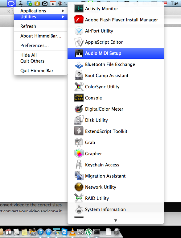 HimmelBar เป็นโปรแกรมฟรีจากค่าย Softbend จากประเทศฝรั่งเศสครับ หน้าที่ของมันก็คือ ทำตัวเองเป็นปุ่มเล็กๆอยู่บน Menu Bar แล้วเวลาที่เราคลิกเข้าไป มันก็จะดึงเอาโปรแกรมทั้งหมดใน Application และ Utilities  ออกมาให้ ซึ่งข้อดีก็คือ เราจะได้เห็นโปรแกรมเวรกรรมมากมายที่เราแทบไม่เคยเข้าไปยุ่งมาก่อน อาจจะทำให้เราได้เรียกโปรแกรมนั้นมาดู หรือ ลบออกก็ได้หากไม่จำเป็นแล้วครับ รวมไปถึง เหมาะกับผู้ใช้งานสาย Windows มาก่อนที่เวลาจะเรียกอะไร ต้องเรียกผ่าน Start Menu ด้วยครับ
