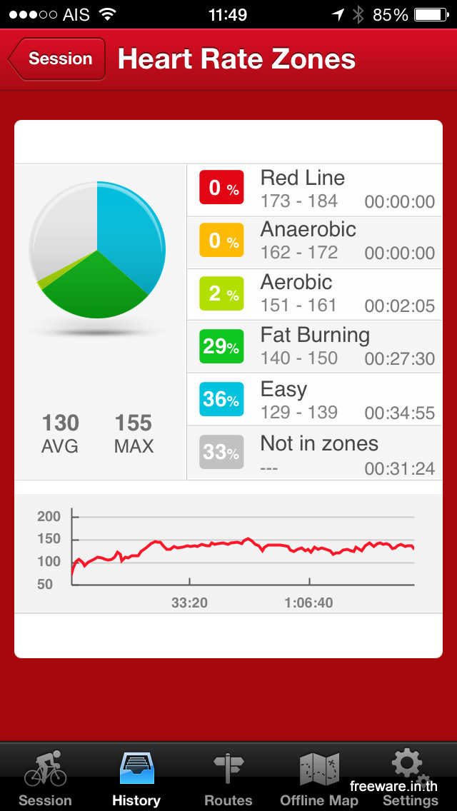 ทีนี้เมื่อเราออกไปวิ่ง หรือ ปั่นจักรยาน ตัวโปรแกรมก็จะเก็บสถิติของอัตราการเต้นของหัวใจเรา ควบคู่ไปกับสถิติการวิ่ง หรือ การปั่นจักรยานไปด้วยนั่นเองครับ