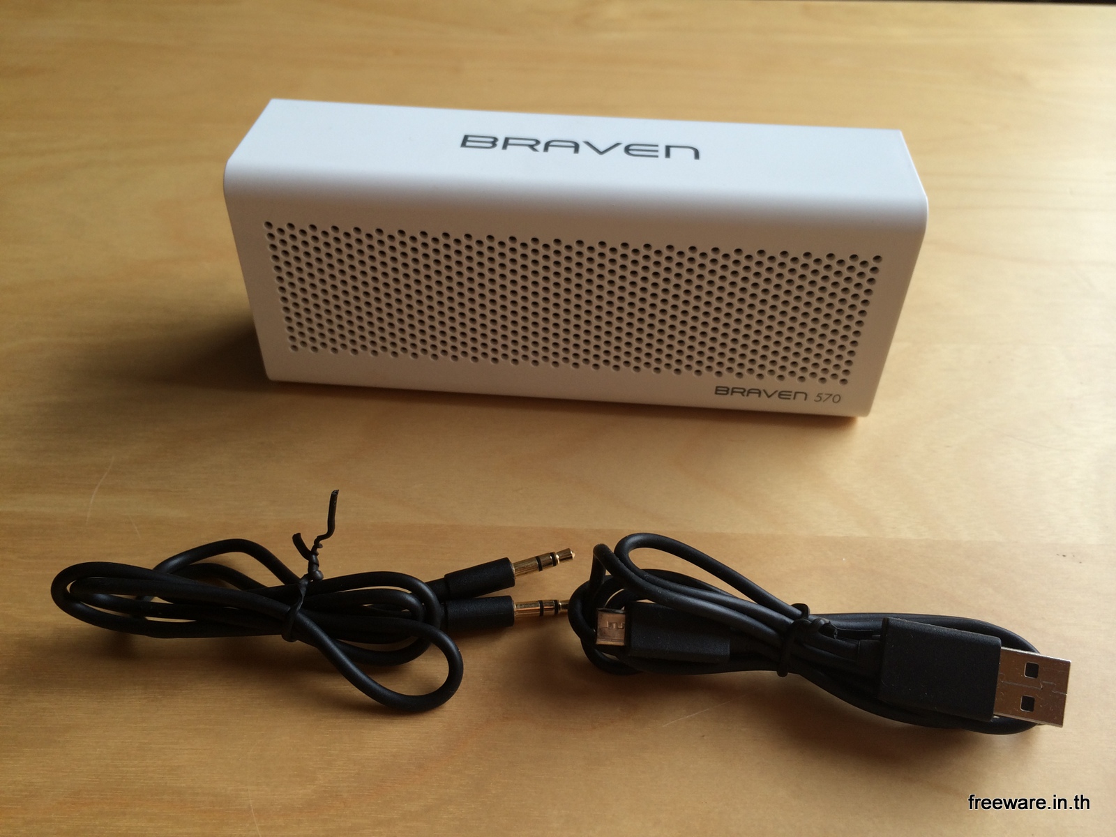 หลังจากที่รีวิว Braven 625s และ BRV-1 ไปแล้ว ซึ่งทั้งคู่มีจุดเด่น ที่ไม่เหมือน Bluetooth Speaker ตัวอื่นเลย BRV-1 ถึก ทน กันน้ำ ส่วน 625S ก็มีอุปกรณ์เสริมให้เดินทางไปใช้งานได้ทั่วโลก แถมยังเป็นลำโพง Outdoor อีกต่างหาก ทีนี้ หลายคนก็สงสัยว่า Braven มันไม่มีลำโพง Bluetooth Speaker แบบธรรมดาบ้างหรอฟระ มีครับ มันคือ Braven 570 นี่แหละครับ ลำโพง Bluetooth แบบธรรมดาๆ ของ Braven แต่ไม่ธรรมดาสำหรับ User อย่างเรานะครับ สำหรับรุ่นประหยัดอย่าง 570 … ในกล่องก็ไม่ได้มีอะไรหวือหวามากนัก มีเพียงสายหูฟังขนาด 3.5 มม และ สาย Micro USB ไว้สำหรับชาร์จไฟ เท่านั้นเอง แต่ถึงจะมีแค่นี้ ตัวสาย 3.5มม นี่ก็ชุบทองอย่างดีนะครับ