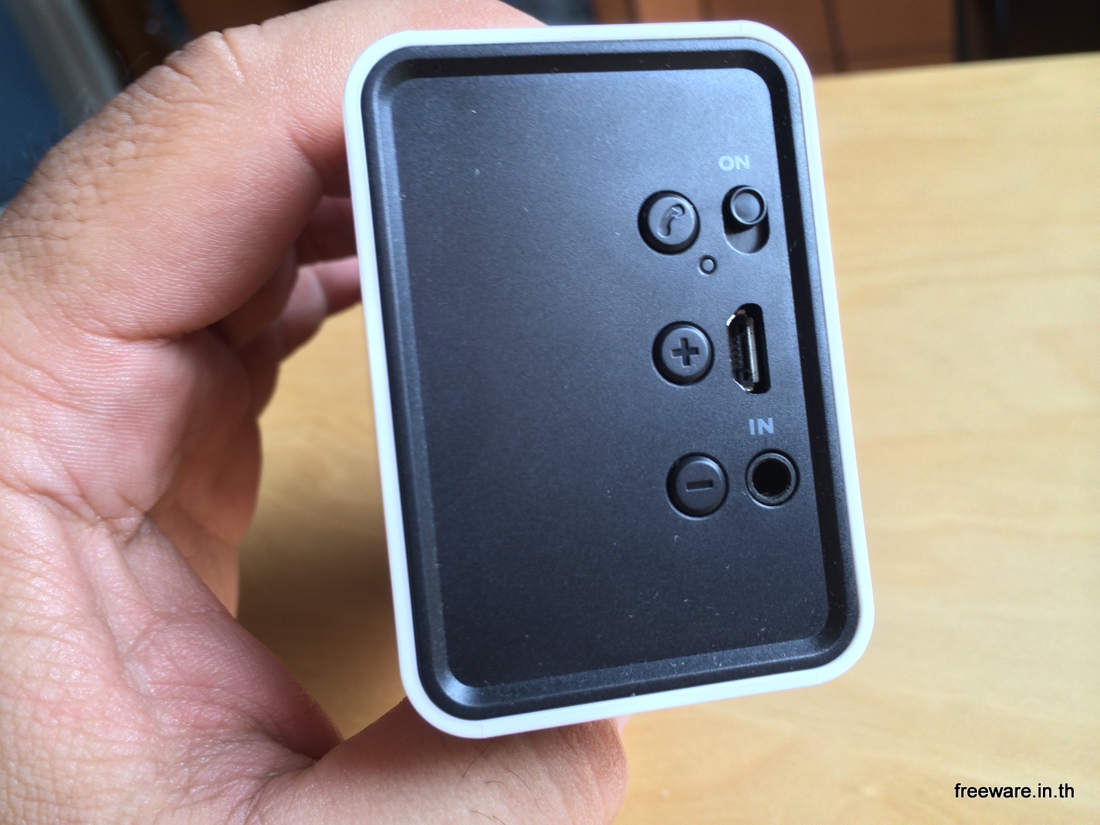 - ปุ่มรูปโทรศัพท์จะเป็น ปุ่มกด รับสาย และ วางสาย เวลาที่เราคุยโทรศัพท์ผ่านลำโพงตัวนี้ กดค้างไว้จะเป็นการ Pair Bluetooth ครับ