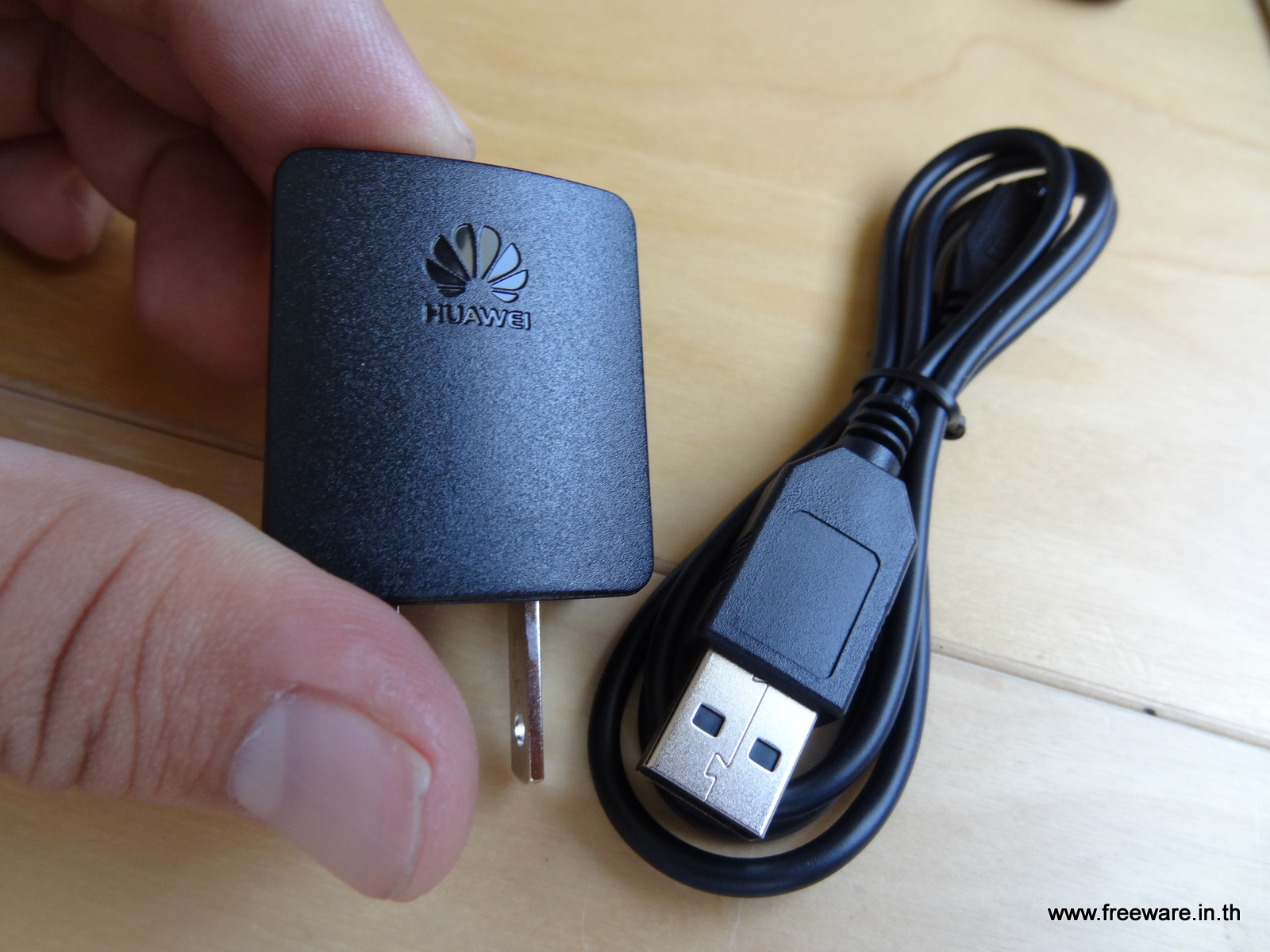 ของที่ให้มาในกล่องมี 3 อย่างด้วยกันครับ นั่นก็คือ สาย Micro USB + หัวชาร์จของแท้จาก Huawei คุณภาพสาย โอเค เป็นสายที่แข็งเลยทีเดียว ส่วนหัวชาร์จก็เสียบได้แน่นหนาดี ขนาดไม่ใหญ่มาก
