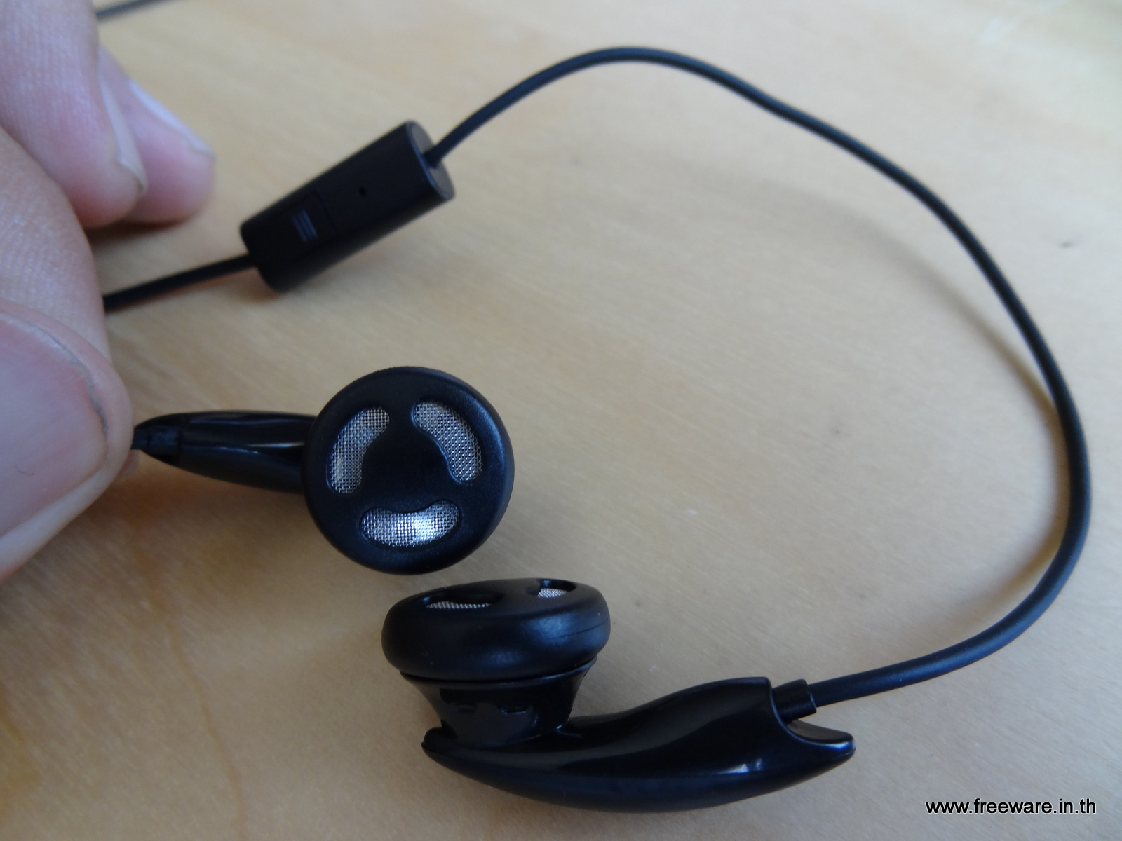 หูฟัง หน้าตาธรรมดาไปนิด แล้วก็รีโมทมีปุ่มกด รับสาย ปุ่มเดียว ไม่มีปุ่มควบคุมเสียงครับ