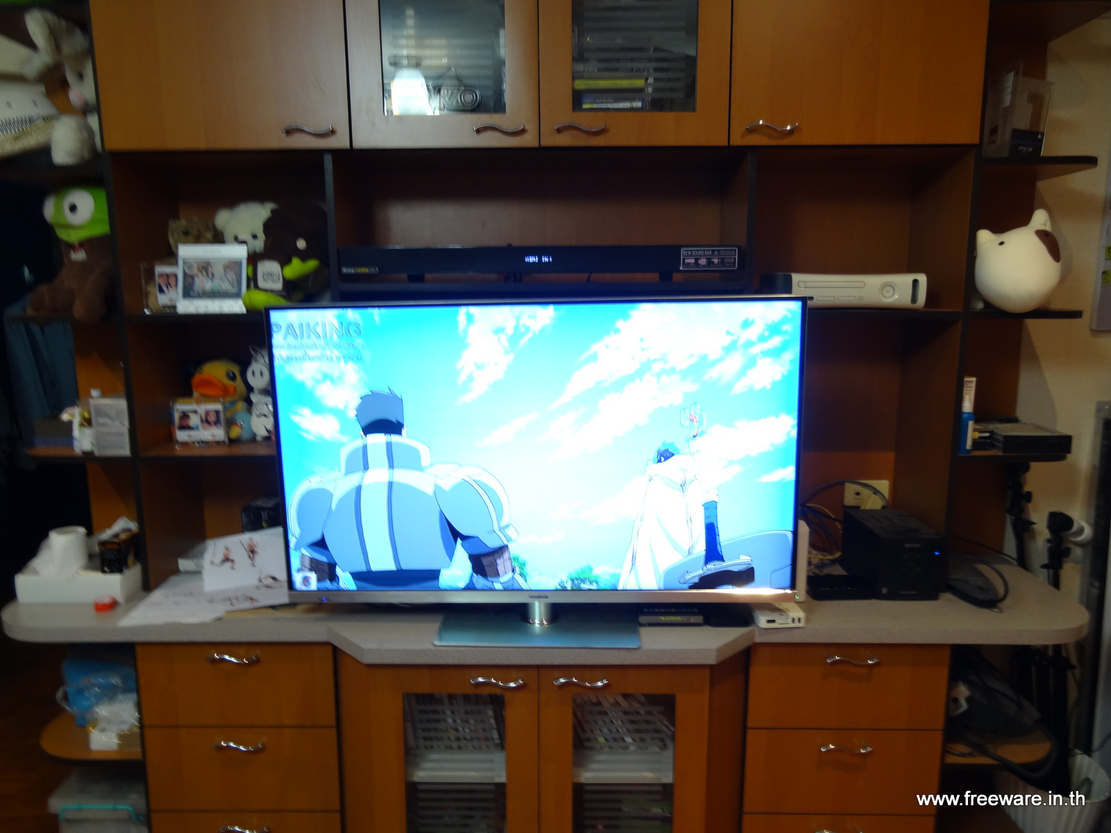 รุ่นที่ผมได้รับมาทดสอบก็คือรุ่น H333T2-4713 เป็น LED TV ขนาด 47 นิ้วครับ ทุกทีที่บ้านใช้แค่ 42 นิ้วอยู่ พอได้ 47 นิ้วมารู้สึกเต็มอิ่มสะใจมากๆเลย ดูจากในรูปเลยครับ ทีวีล้นทะลักตัว Build-in ที่ผมทำออกมาเลย