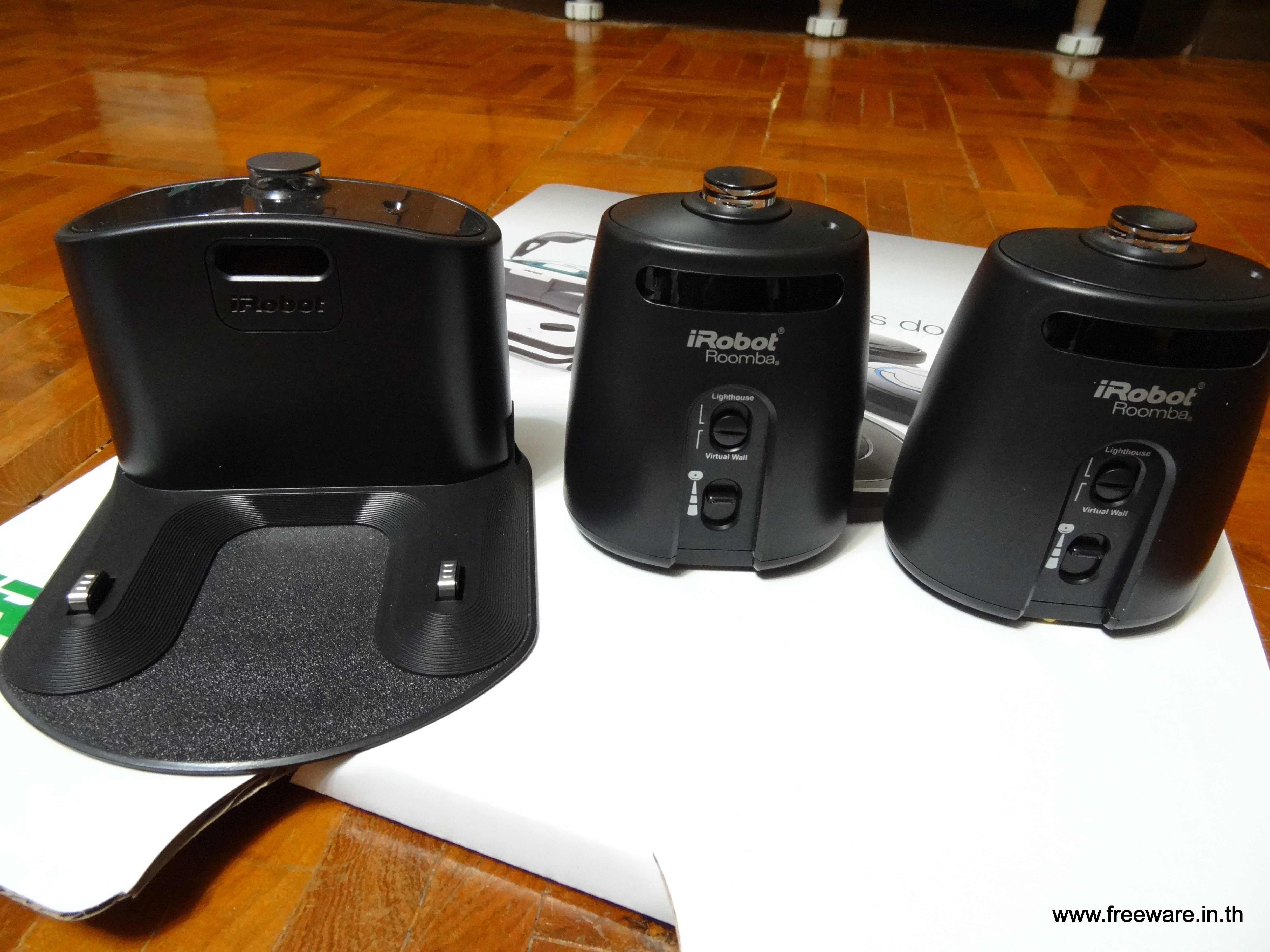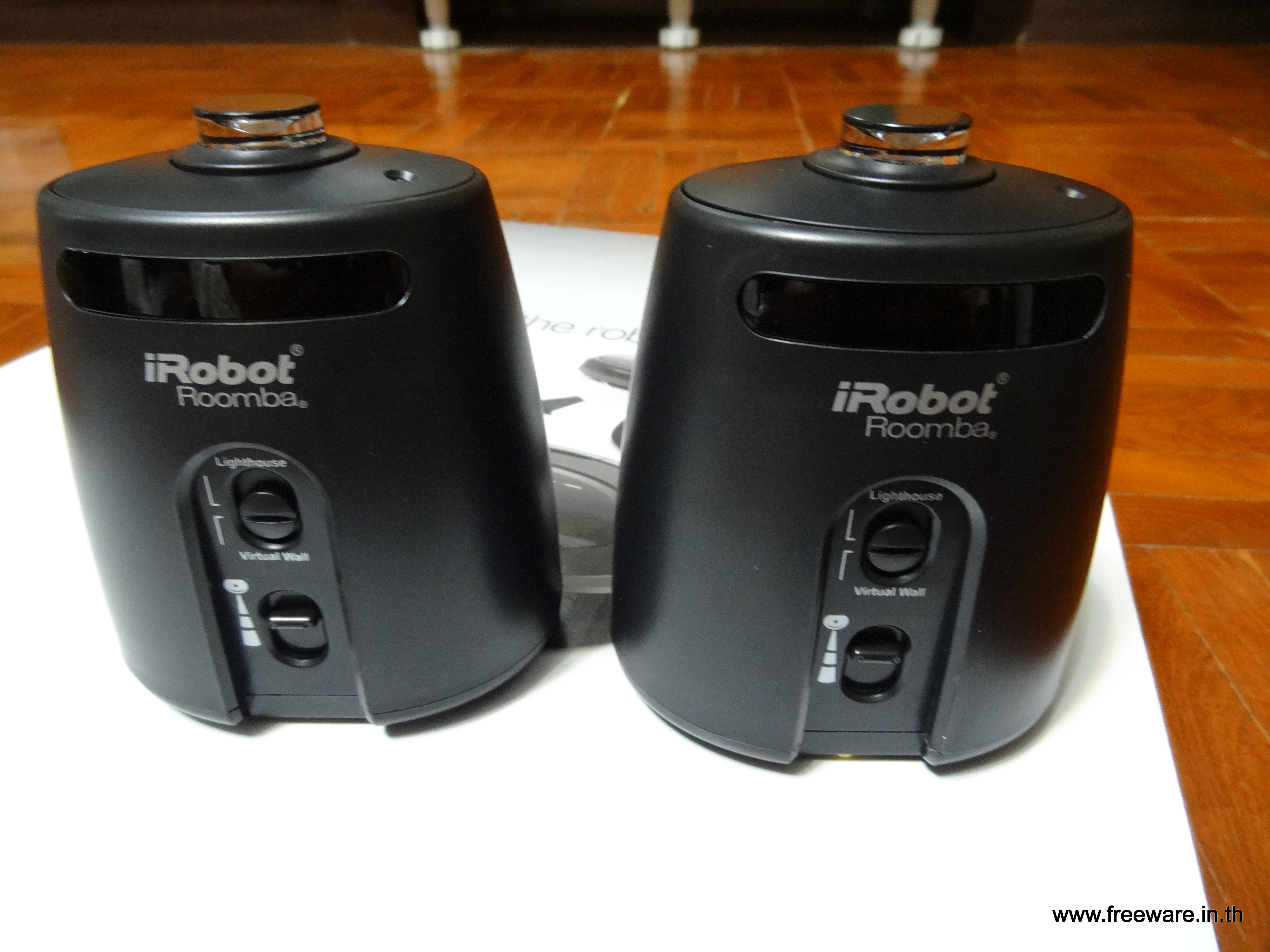 - Virtual Wall หรือ กำแพงล่องหน ใช้ในการกั้นพื้นที่ ที่ไม่อยากจะให้ iRobot พุ่งเข้าไปทำความสะอาด หลักๆ ก็จะเป็นโซนที่เปียกน้ำเช่นห้องน้ำ หรือ ห้องสำคัญอย่างห้องพระ อะไรแบบนี้นะครับ