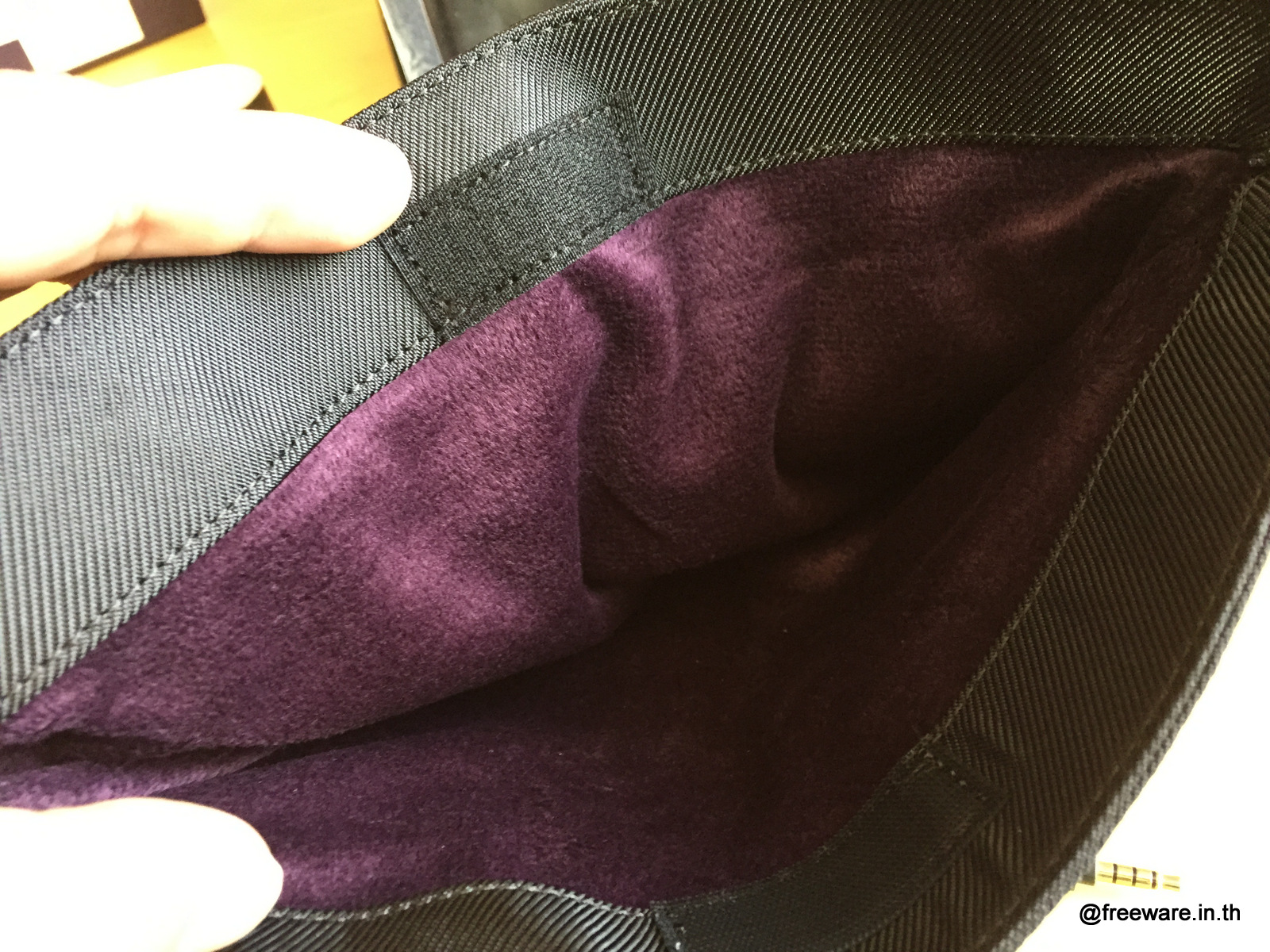 วัสดุข้างนอกเป็นเหมือนไนลอนกันน้ำคุณภาพสูงที่ใช้กับพวก เป้แพงๆ ส่วนข้างในเป็นกำมะหยี่ ที่นุ่มมากๆ