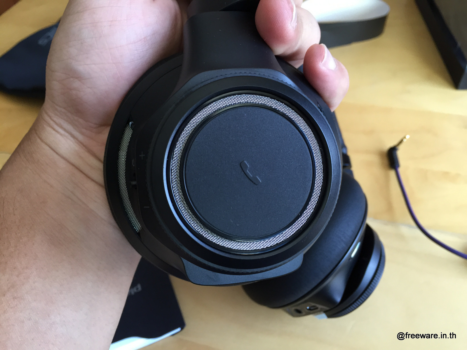เราสามารถควบคุมการเล่น และ หยุดเพลงด้วยปุ่มตรงหูฟังด้านขวาครับ และ มี NFC เพื่อเชื่อมต่อง่ายๆ ให้ด้วย ดังนั้น ถ้ามือถือใครมี NFC ก็เอามาแตะที่หูขวา แล้วก็จะ Sync กันโดยอัตโนมัติทันทีครับ