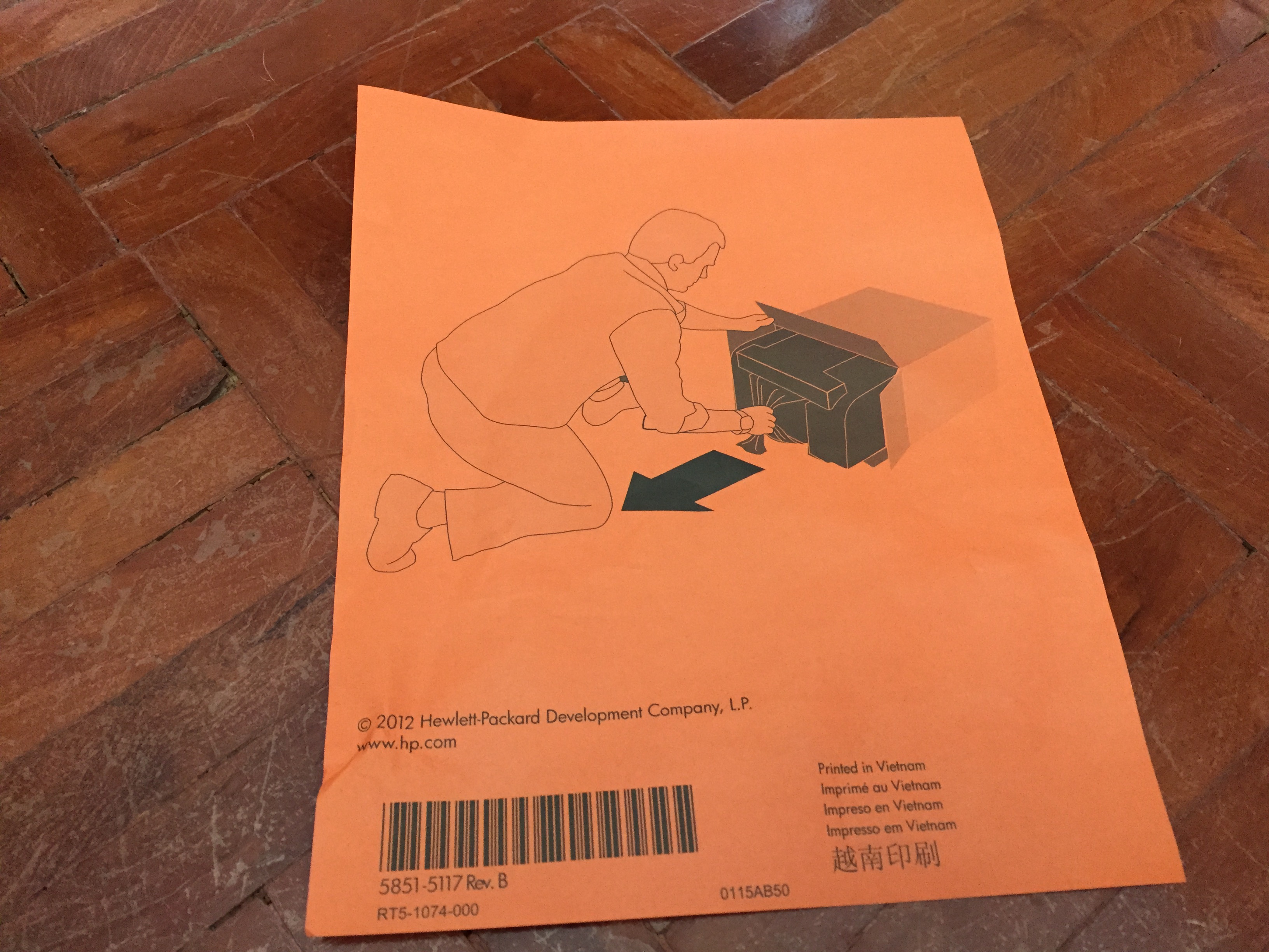 เปิดฝากล่องมาครั้งแรกก็เจอกระดาษใบนี้แปะอยู่บนเครื่อง เพื่อบอกให้รู้ว่า ถ้าจะลากเอา Printer ออกมาจากกล่องแบบง่ายๆ ให้ทำแบบนี้นะ (เออดีแฮะ ทุกทีเขย่าออกจากกล่องกันจนหลังแทบหัก)