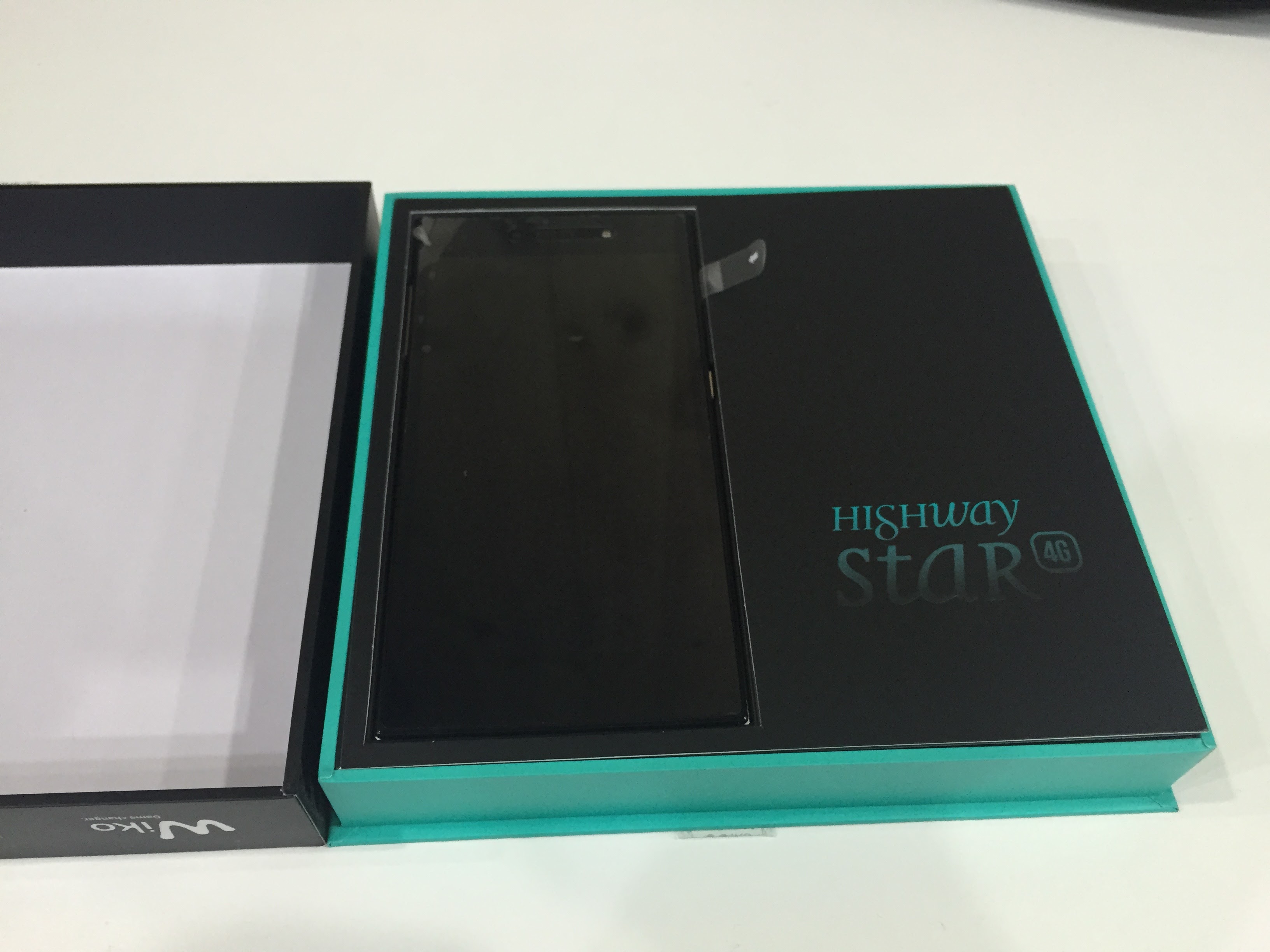 ก่อนอื่นก็มาดูในกล่องกันก่อนว่ามีอะไรให้บ้าง เปิดฝามาเจอเจ้า WIKO Highway Star 4G นอนหน้าดำคร่ำเครียดอยู่ ตัวเครื่องซีลมาอย่างดีพร้อมโลโก้สีเขียวด้านขวา