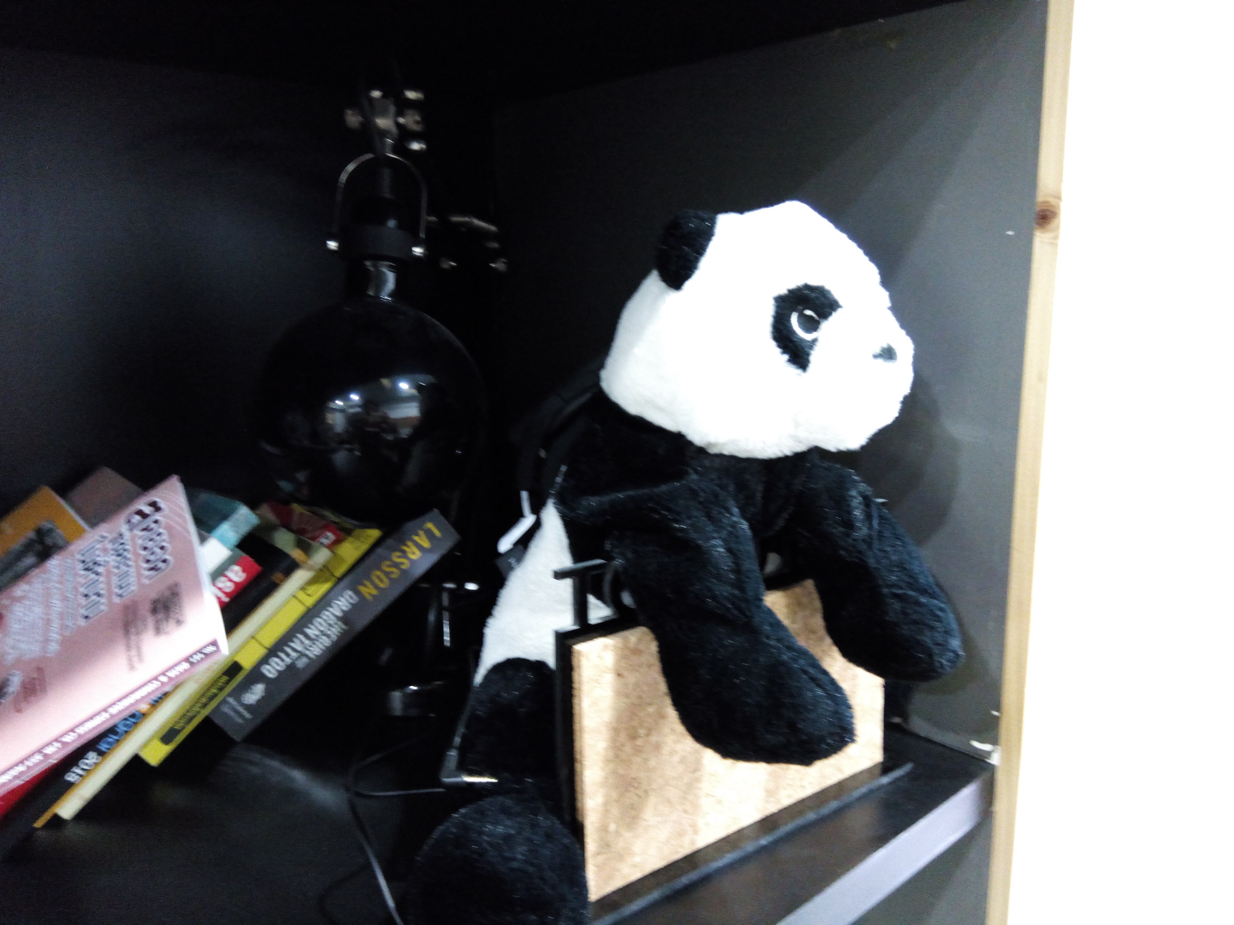 ลองเอามาถ่ายในภาพที่แสงน้อยๆกันบ้าง นั่นไง บรรลัยสมเป็น Android … ภาพนี้ผมพยายามโฟกัสที่หมีแพนด้า ถ้าไม่นับเรื่องเบลอ ก็มีปัญหาเรื่องเกลี่ยสีเว่อนี่แหละ หมีขาวอะไรขนาดนี้