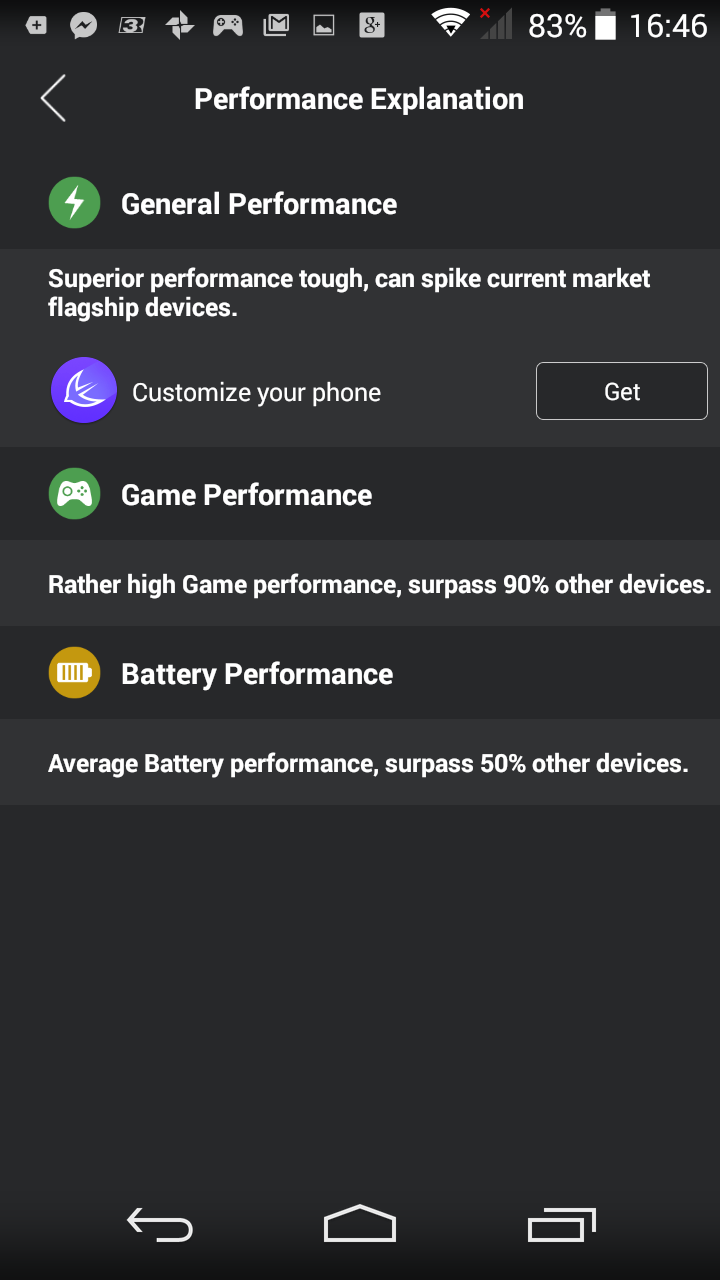 ทาง ANTUTU ก็แนะนำเรื่องผลของการทดสอบมาอยู่ในเกณฑ์ค่อนข้างดีทีเดียว ความจุของ Battery อยู่ที่ 2,450 mAh เป็นแบบ Lithium Polymer ใช้ประมาณ 1 วันก็ได้อยู่นะ