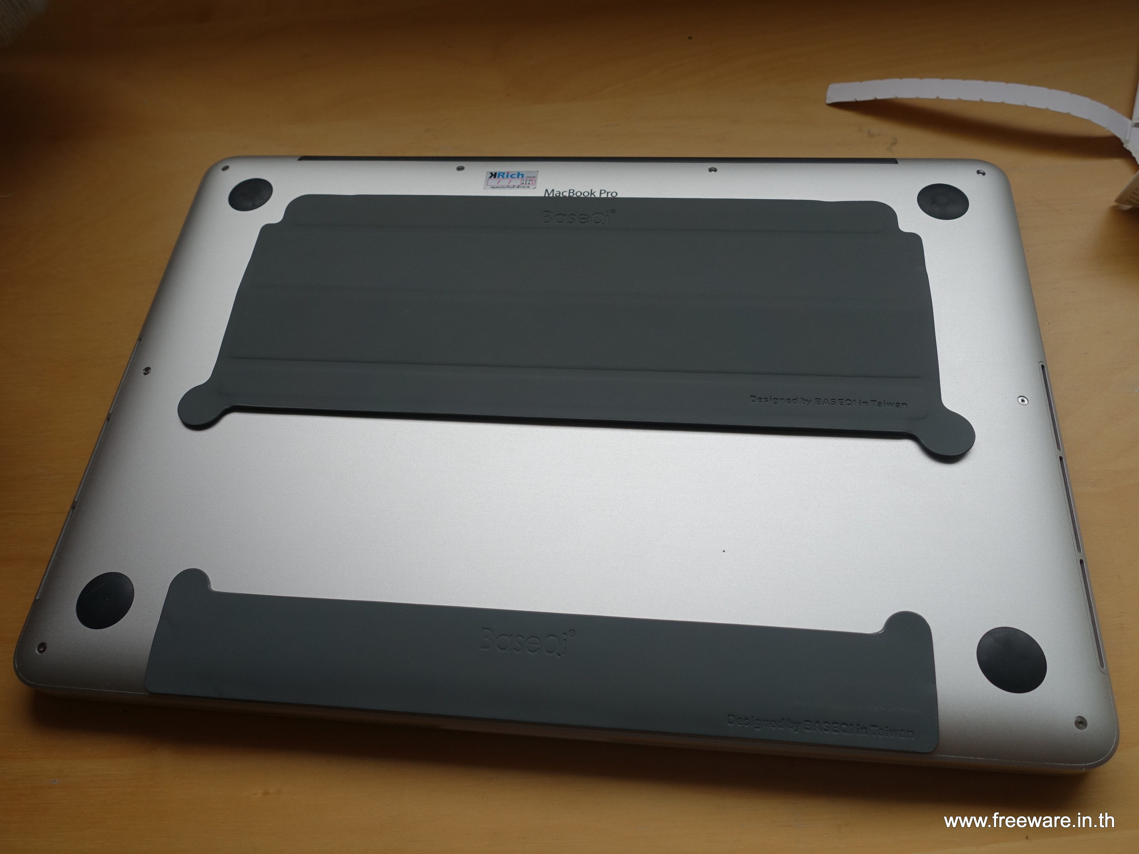 อีกแผ่นนึงแปะตรงใต้เครื่องตรงส่วนที่เป็นฐานของ Keyboard เพื่อไม่ให้เครื่องเป็นรอยตอนที่ยกเครื่องให้สูงขึ้นครับ