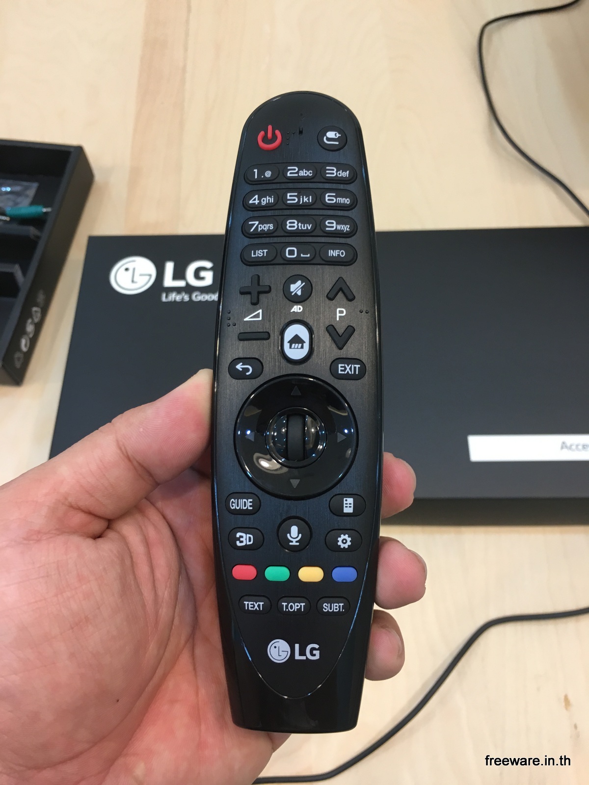 การควบคุมผ่านรีโมทก็ต้องบอกว่าทาง LG ทำการบ้านมาดีมาก ตัว Magic Remote มีการอัพเกรดความสามารถเพิ่มขึ้นเรื่อยๆ โดยที่ในรุ่นใหม่ก็จะรวมตัว Keypad เข้าไปเป็นอันหนึ่งอันเดียวกับ Magic Remote แล้ว ทำให้กดเปลี่ยนช่องแบบเลือกช่องได้จากตัวรีโมทเลย