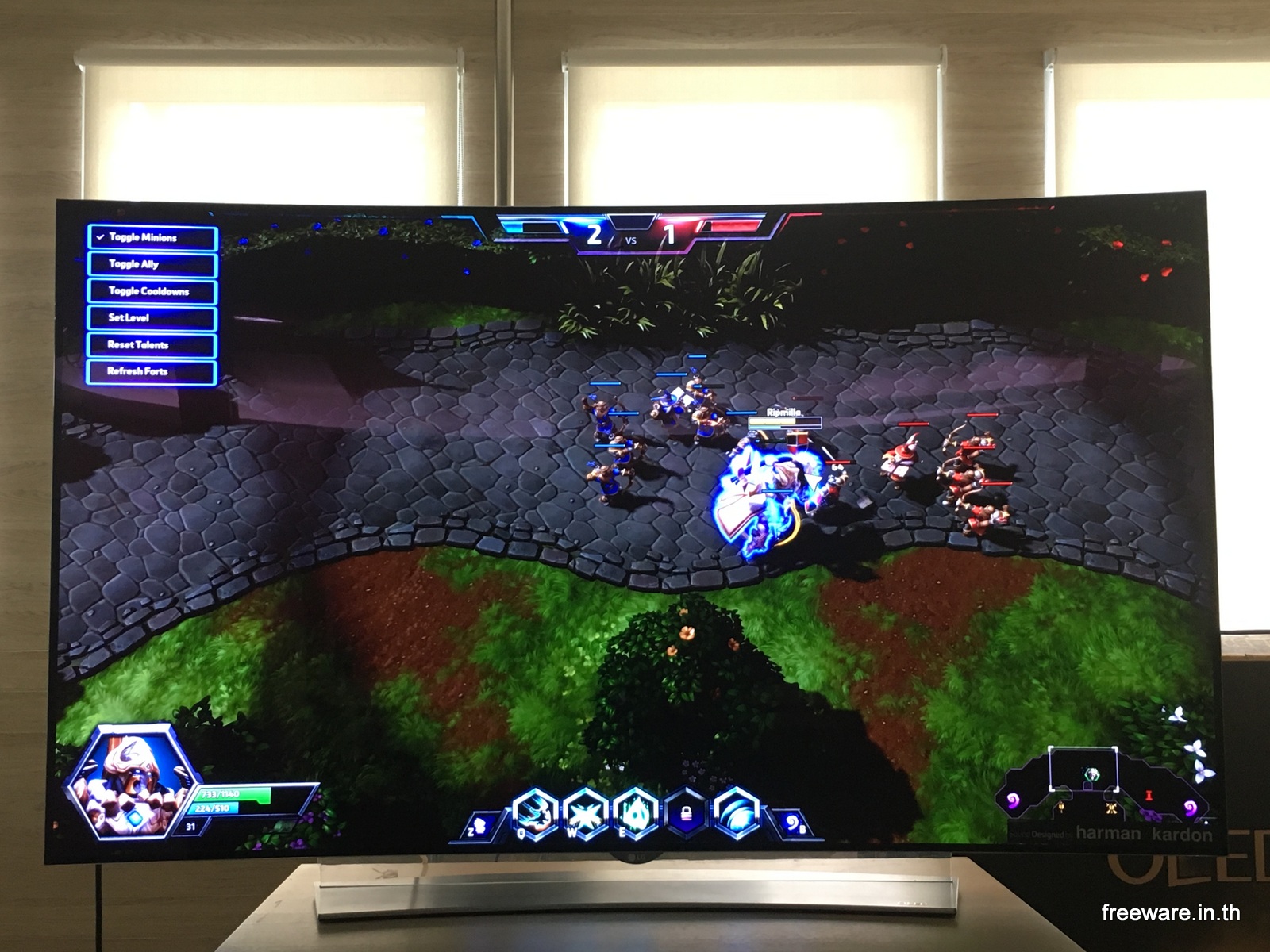 ลองเอามาเล่นเกมบ้าง พอดีช่วงนี้ติด Hero of the Storm อยู่เลยเลือกเกมนี้แหละครับ ไม่ฉูดฉาดมาก กำลังดี แต่เจอปัญหานึงระหว่างเล่นคือ อาการ Mouse Lag นิดๆ แบบนิดเดียวจริงๆ ผมไม่แน่ใจว่าเพราะระยะของสาย HDMI ที่มันยาวไป หรือว่าอะไร เลยทำให้มีอาการ Mouse หลอนๆอยู่หน่อยนึง ซึ่งพอปรับกลับมาแสดงผลบน Notebook อาการ Lag นี้กลับหายไป เนื่องจากวันทดสอบเตรียมสาย HDMI ไปเส้นเดียวเลยไม่ได้ทดสอบกับสายเส้นอื่นเลย อันนี้เดี๋ยวอาจจะขอไปทดสอบอีกทีครับ
