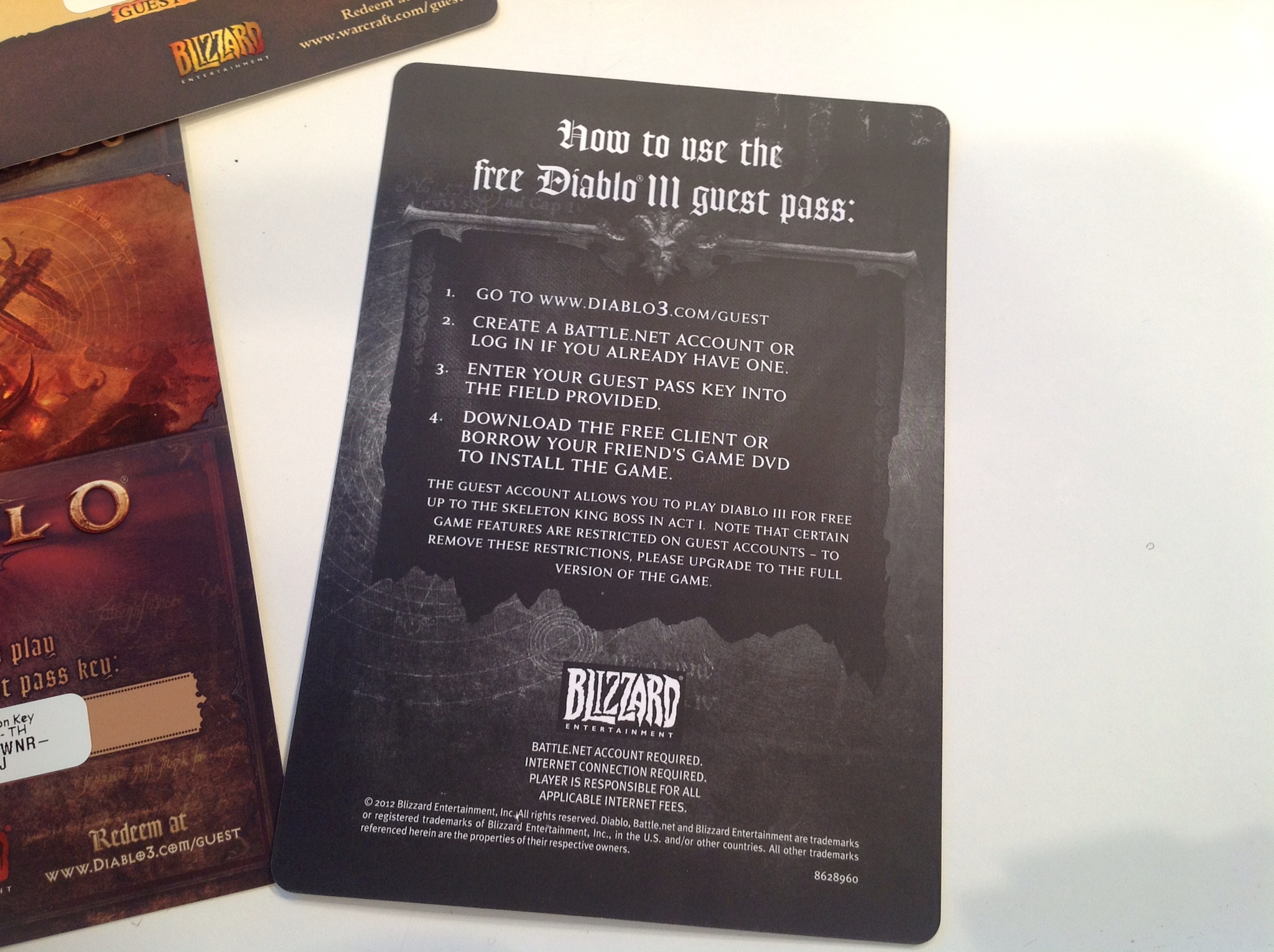มี Guest Pass ของเกม World of Warcraft ให้ด้วย ซึ่งสามารถทดลองเล่นได้จนถึง Level 20