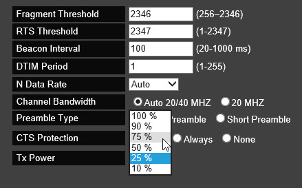 ในการตั้งค่าแบบ Advance ของ Wireless LAN จะมีการกำหนด Channel Bandwidth ให้ด้วย ซึ่งถ้าเป็น 20/40 Mhz จะสามารถทำให้คุณเร่งความเร็วในการส่งข้อมูลได้ถึง 300Mbps เลยล่ะครับ ซึ่งถ้าเกิดเราไม่ได้ มา setup ค่านี้ บวกกับ ค่าใน การ์ด LAN (ผมเคยเขียน Blog สอนไว้ที่นี่) จะทำให้คุณใช้งานความเร็วได้แค่ 65Mbps – 150Mbps เองครับ ส่วนกำลังส่ง คือ Tx Power .. ค่า Default ที่มากับเครื่อง คือ เปิดไว้แค่ 25% !!! ขนาดเปิดแค่นั้น สัญญาณยังแรงทั่วคอนโดผมแล้ว .. นี่ถ้าเปิดเต็ม 100% ไม่ทะลุไปปากซอยเลยเรอะ!!
