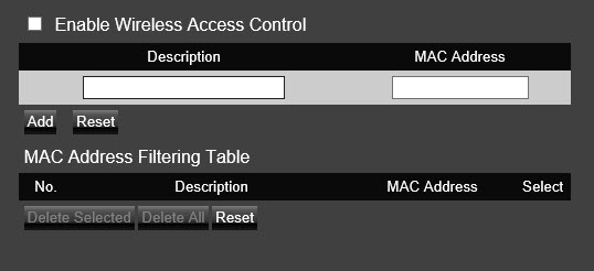 มีระบบ Wireless Access Control ทำการกำหนดได้ว่าอุปกรณ์ที่มี Mac Address ไหนจะสามารถเข้ามาใช้เครือข่ายไร้สายของเราได้บ้าง