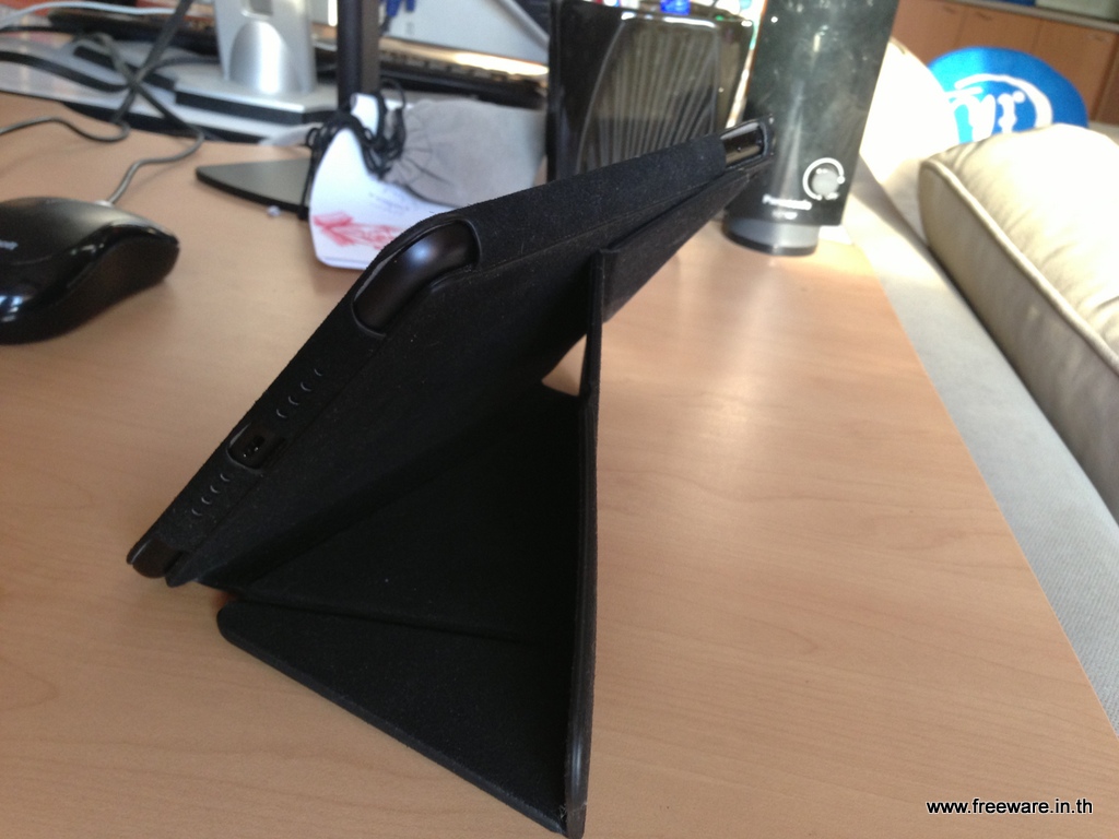 มุมนี้ก็คือการวางแนวตั้งครับ เท่าที่ผมลองใช้ดู ก็ดูมั่นคงไม่โยกเยกนะ สามารถวางทิ้งไว้แล้วกด สั่งการบน iPad ได้เลยโดยที่ไม่ต้องกลัวล้มแต่อย่างใด