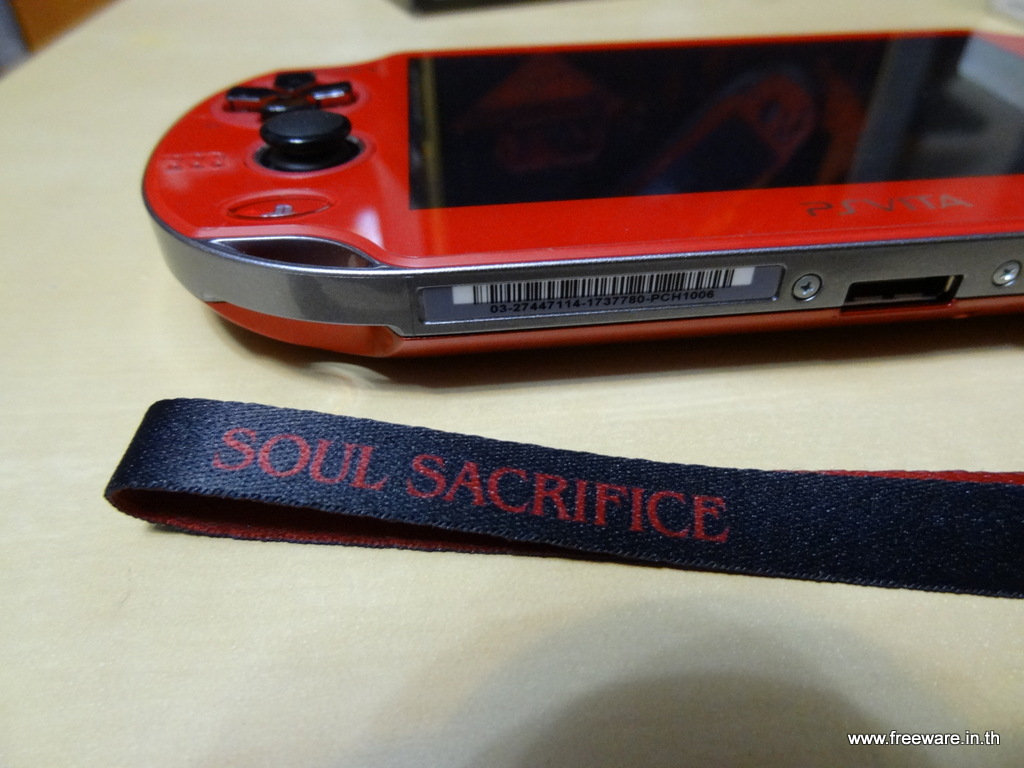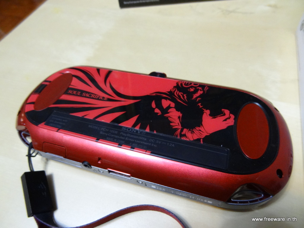 • เครื่อง PS Vita สีแดงแบบ Crimson Red ที่มีลายด้านหลังเป็นเกม Soul Sacrifice แบบ WIFI