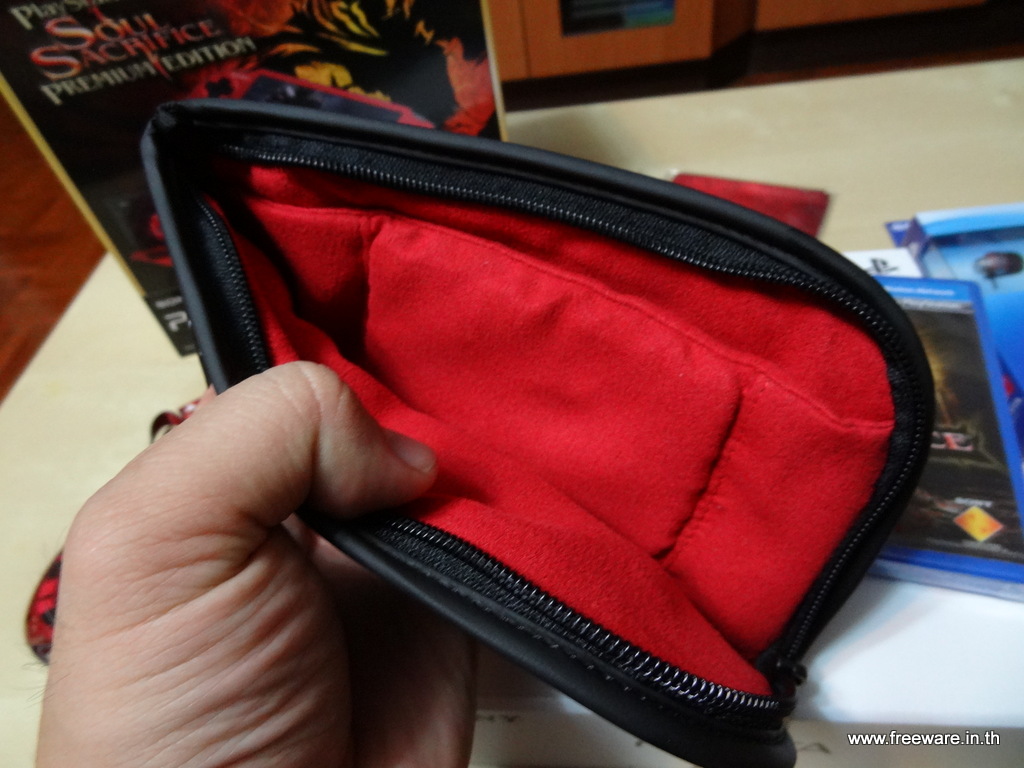 ด้านในเป็นผ้ากำมะหยี่หนาหนุ่ม มีช่องใส่พวกหูฟัง หรือเกมอื่นๆให้อีกหนึ่งช่อง