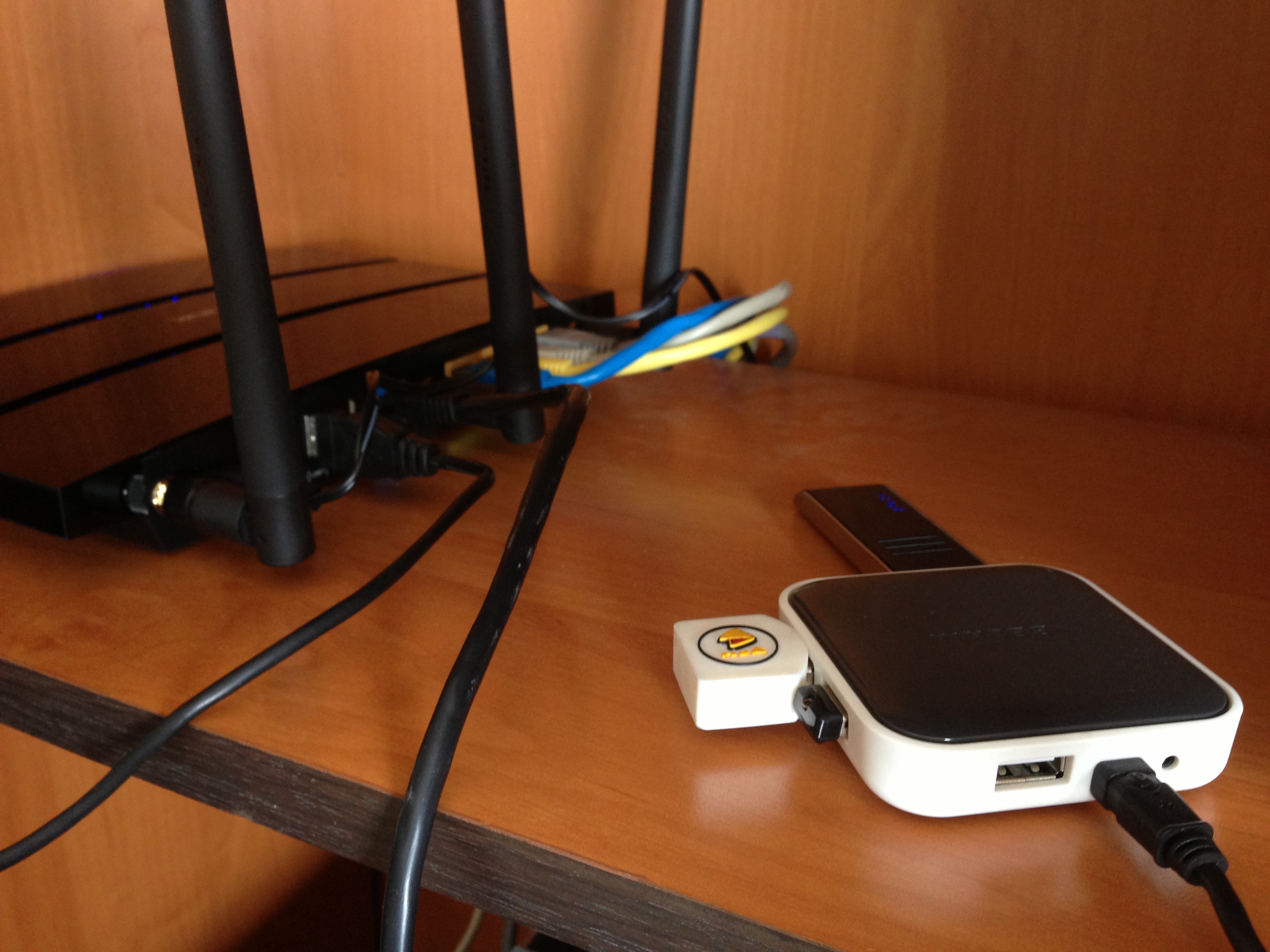 บนตัว TL-WDR4900 มี USB มาให้แค่ 2 Port แต่ผมก็เล่นแผลงๆด้วยการยัด USB Hub เข้าไปเพิ่มครับ ผลที่ได้ก็คือ เห็นอุปกรณ์ได้เยอะขึ้นด้วย แต่การใส่ USB Hub เพิ่มเข้าไปก็มีข้อจำกัดนะครับ รู้สึกจะเสียบเพิ่มได้แค่ 4 USB เท่านั้น