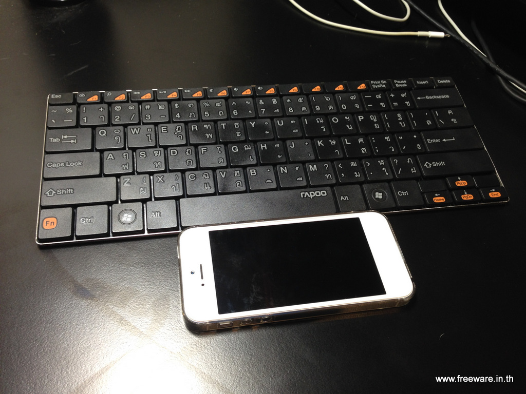 ความกว้าง x ยาว ของ Keyboard ตัวนี้คือ 28.8 cm x 11.1 cm ลองดูขนาดเมื่อเทียบกับ iPhone5 นะครับ