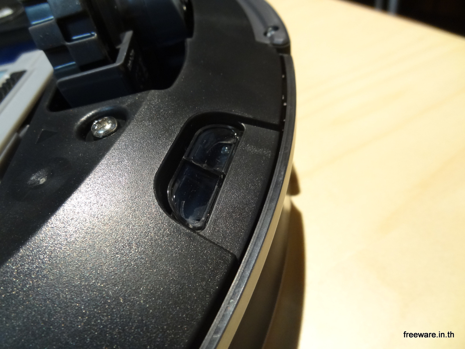 รอบๆตัว iRobot Roomba จะมี Sensor เป็นตาแบบนี้ทั้งหมด 6 จุดด้วยกัน ซึ่งเจ้าตาพวกนี้แหละที่ทำให้ iRobot มันไม่เดินตกบันไดครับ ดังนั้นเวลาปล่อยเค้าทำงานชั้น 2 ก็สามารถปล่อยได้แบบหายห่วงได้เลย ซึ่งนอกจากใช้ในการป้องกันไม่ให้ตกบันไดแล้ว ยังมีเทคโนโลยี 2 อย่างที่ใช้ในการตรวจสอบความสะอาดของบ้าน ก็คือ iAdapt ที่จะยิงสัญญาณออกมา 60 ครั้งต่อวินาทีเพื่อตรวจสอบความสะอาด อีกอันก็คือ Dirt Detect เป็นการยิงคลื่นเสียงออกมาเพื่อตรวจสอบฝุ่นในพื้นผิวนั้นๆ
