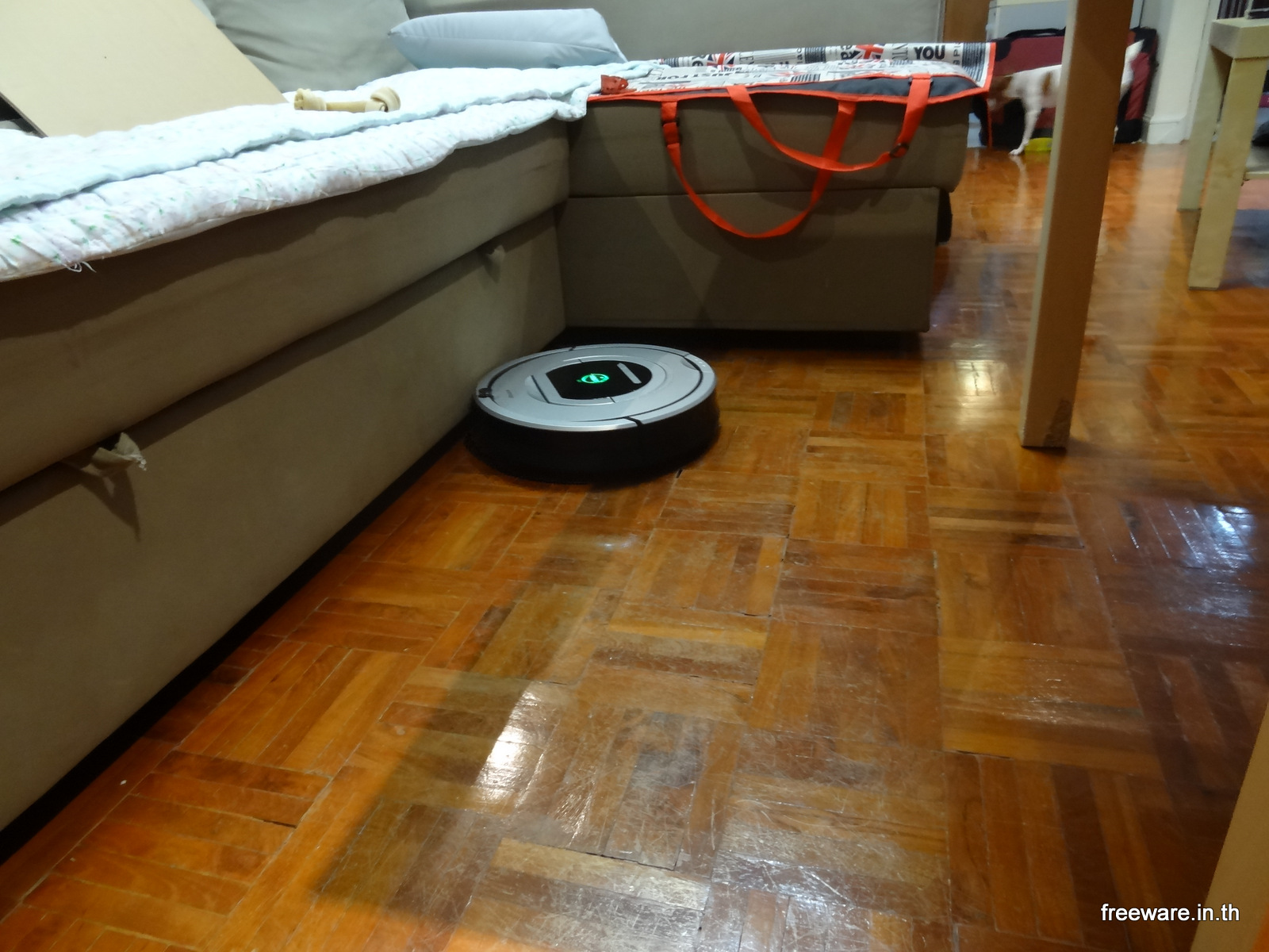 • ช่วง 2-3 วัน จะเป็นการปรับแต่งเส้นทางวิ่งของ iRobot กับ ของในห้องเราครับ ในห้องผมมันจะมีมุมที่ iRobot วิ่งเข้าไปแล้วติดอยู่ 2 มุม นั่นก็คือ ช่องว่างใต้ลู่วิ่งออกกำลังกาย กับใต้โต๊ะวางพัดลม ทางแก้ของผมก็คือ ต้องอุดทางเข้าพวกนั้นซะ มันจะไม่ได้เข้าไปติดอีก หลังจากนั้นก็สะดวกยาวๆ ครับ