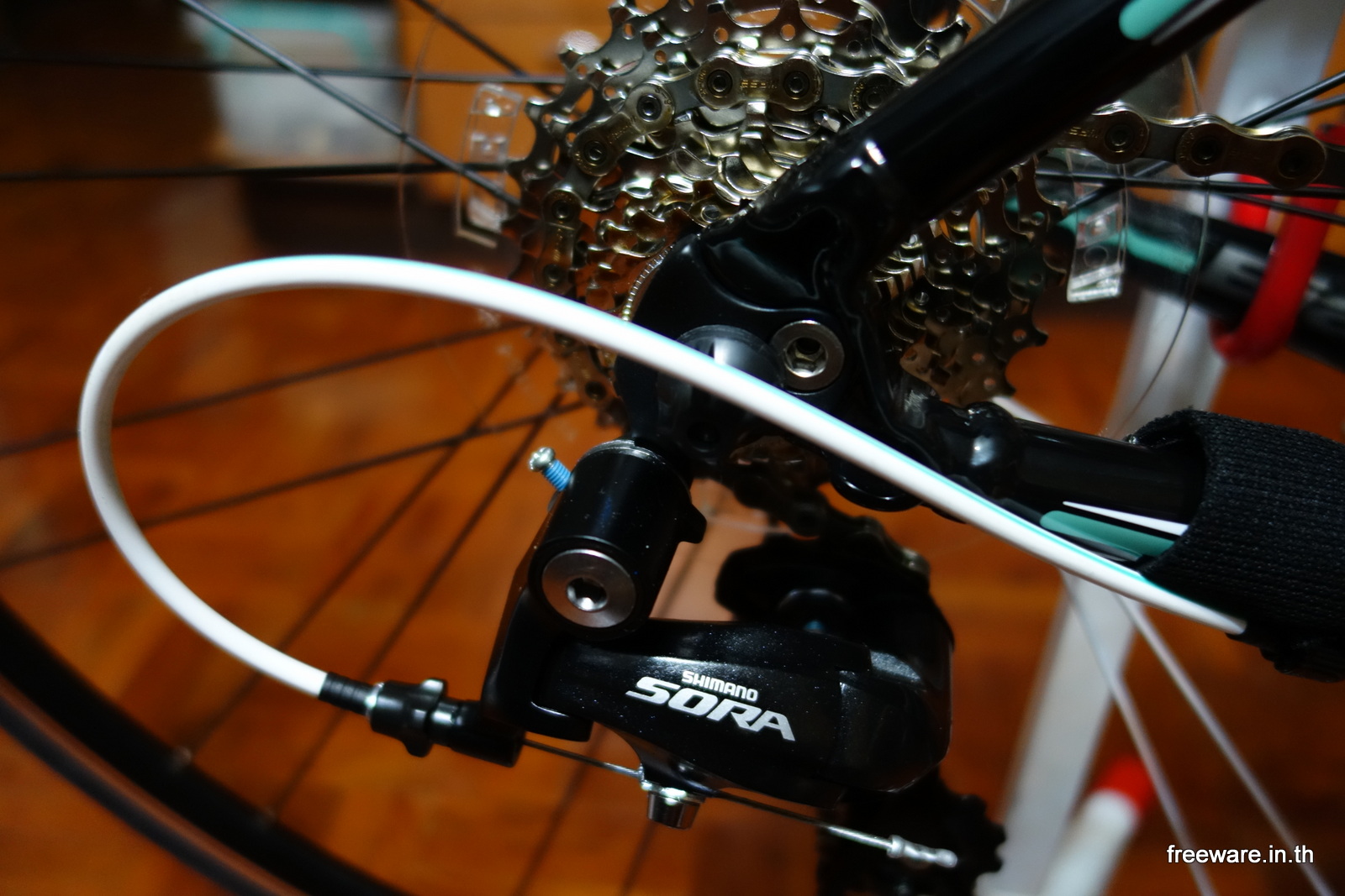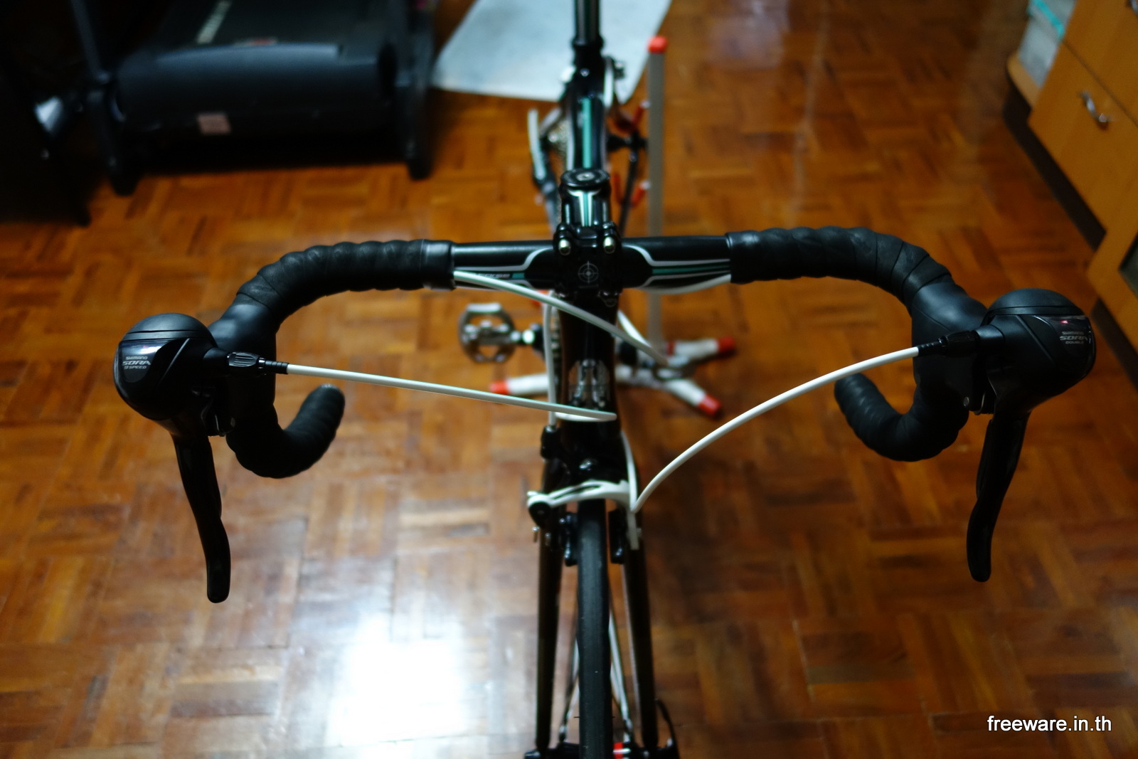 Shifter ของ Shimano Sora เป็นแบบไม่ซ่อนสาย เห็นแล้วก็แอบขัดใจเหมือนกันนะเนี่ย