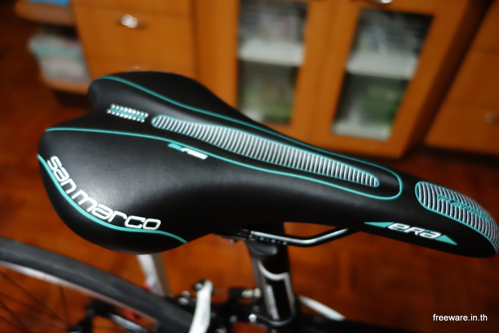เบาะของ Selle San Marco ตัวเดียวกับของ Impulso แต่คนละสี ครับ ตัวนี้จะมีสีเขียวแซมน้อยกว่า แต่ในแง่คุณภาพถือว่าเท่ากัน