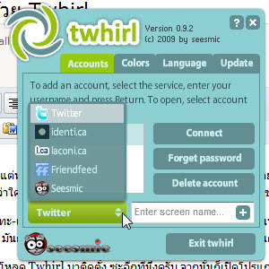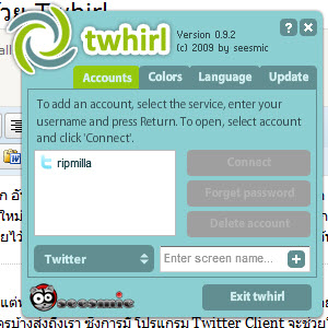 แรกเริ่มเดิมทีทาง Twhirl จะให้เราใส่ Account ก่อน ก็เลือก Account แบบ Twitter แล้วกรอก Username ลงไปเลยครับ