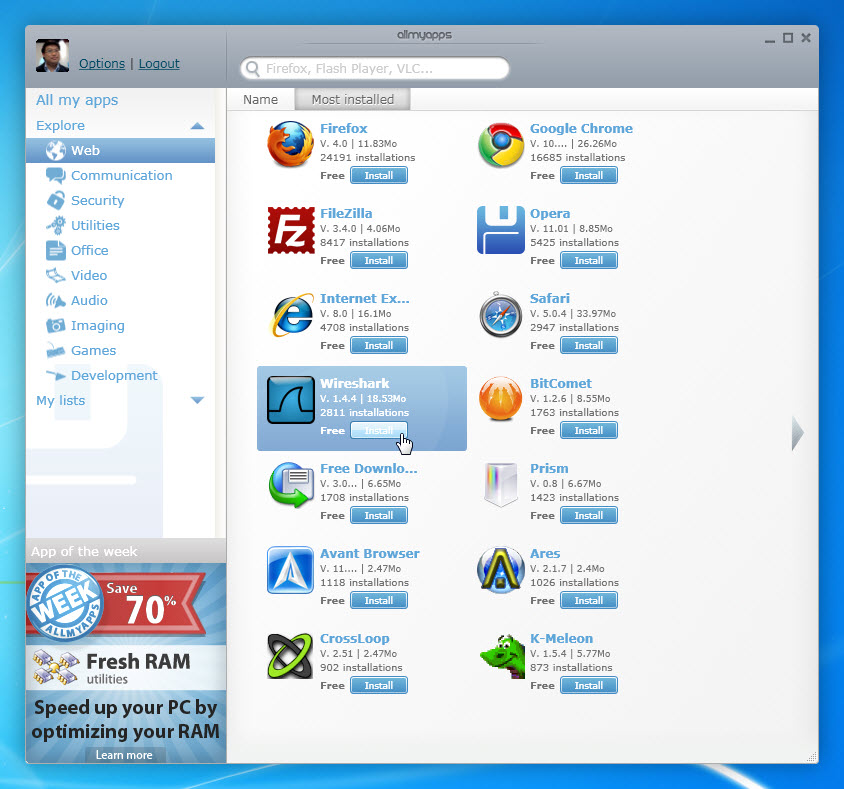ทาง AllMyApps ก็เลยพัฒนาตัวเองให้กลายเป็นกึ่งๆ AppStore บนฝั่ง Windows ครับ โดยที่แค่เราโหลดตัว AllMyApps มา จากนั้นเราก็สามารถโหลด โปรแกรมฟรี มากมายที่เป็นชื่อดังบนโลกอินเทอร์เน็ตซึ่งหลายตัวเองก็เคยรีวิวใน Freeware.in.th แล้วด้วย การค้นหาหรือการติดตั้งโปรแกรมก็ง่ายๆ แค่กดคลิกๆ แล้วติดตั้ง ที่เหลือก็ปล่อยมัน เดี๋ยวมันก็ติดตั้งของมันเอง