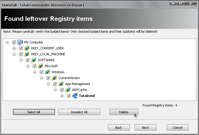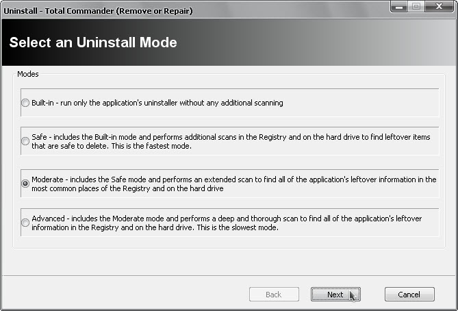โหมด Moderate จะใช้ตัว Uninstaller ที่มากับโปรแกรมนั้นๆในการถอนตัวเองออกก่อน
