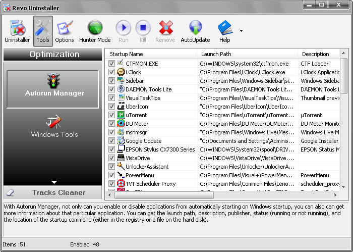 - Autorun Manager : ไว้จัดการ Autorun ของ Windows ซึ่งจะทำให้เราโหลดโปรแกรมได้เร็วขึ้นครับ