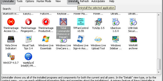 โปรแกรม Revo Uninstaller เป็นโปรแกรมประเภท Uninstaller มีหน้าที่ไว้ถอนโปรแกรมต่างๆที่ติดตั้งลงใน Windows System … ค้นหา ทั้งค่าติดตั้ง ไฟล์ Registry ให้ครบถ้วนและลบออกทิ้งไม่ให้หลงเหลือ ตัวโปรแกรมเป็นผลงานของ VS Revo Group ได้รับรางวัลมากมาย ไม่ว่าจะเป็นรางวัล 5 ดาวจาก Softpedia หรือ 5 Star Rating จาก download.com ครับ