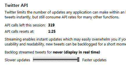 สามารถปรับความเร็วในการ อัพเดท API จากทาง Twitter ได้ว่าจะเอามากน้อยแค่ไหนต่อรอบ